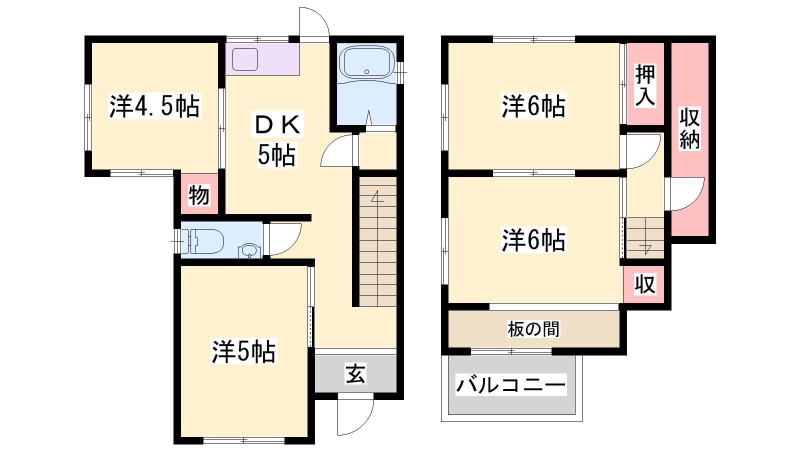 - DK5帖、洋室6帖、洋室6帖、洋室5帖、洋室4.5帖