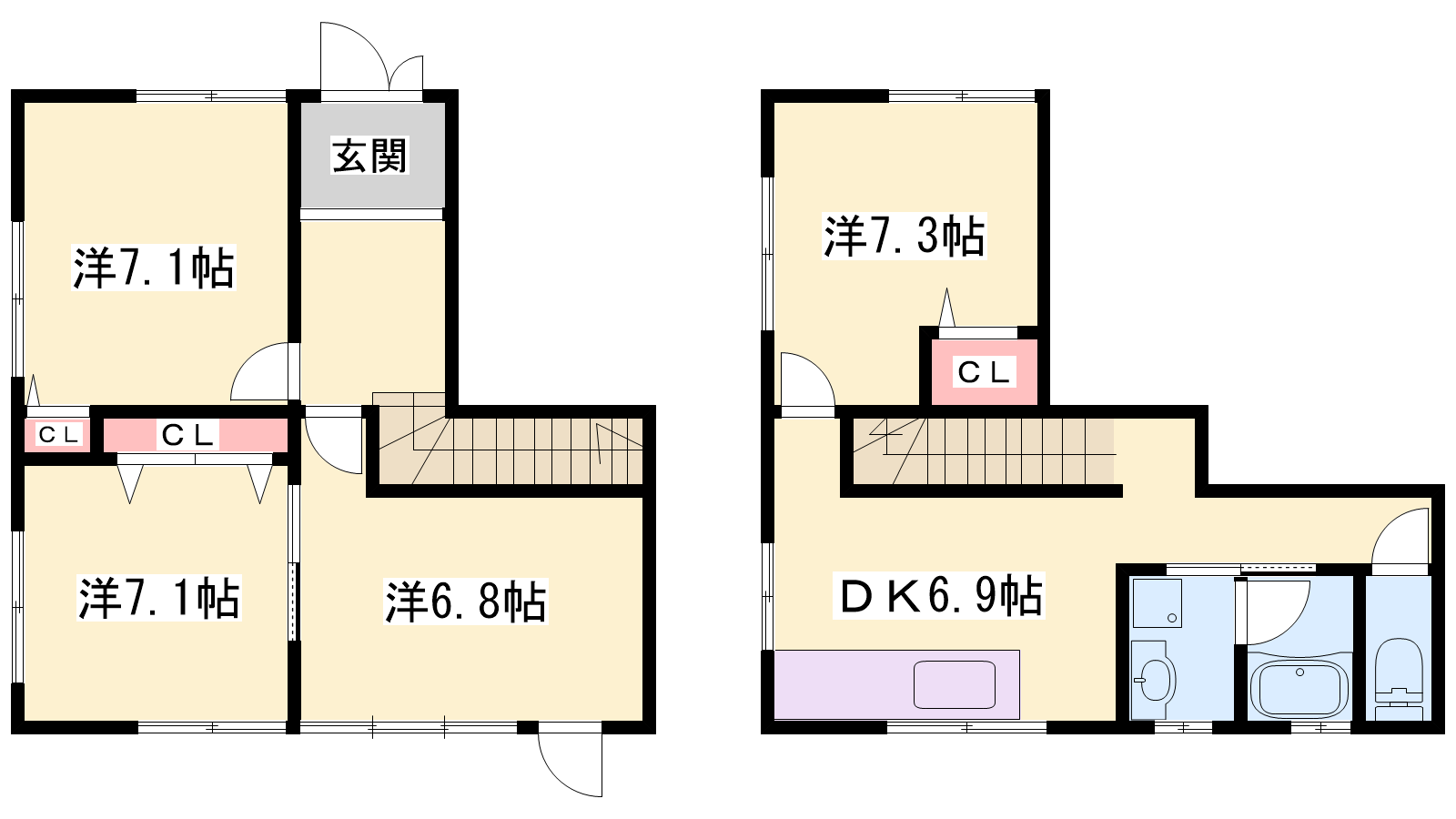 - DK6.9帖、洋室7.3帖、洋室7.1帖、洋室7.1帖、洋室6.8帖