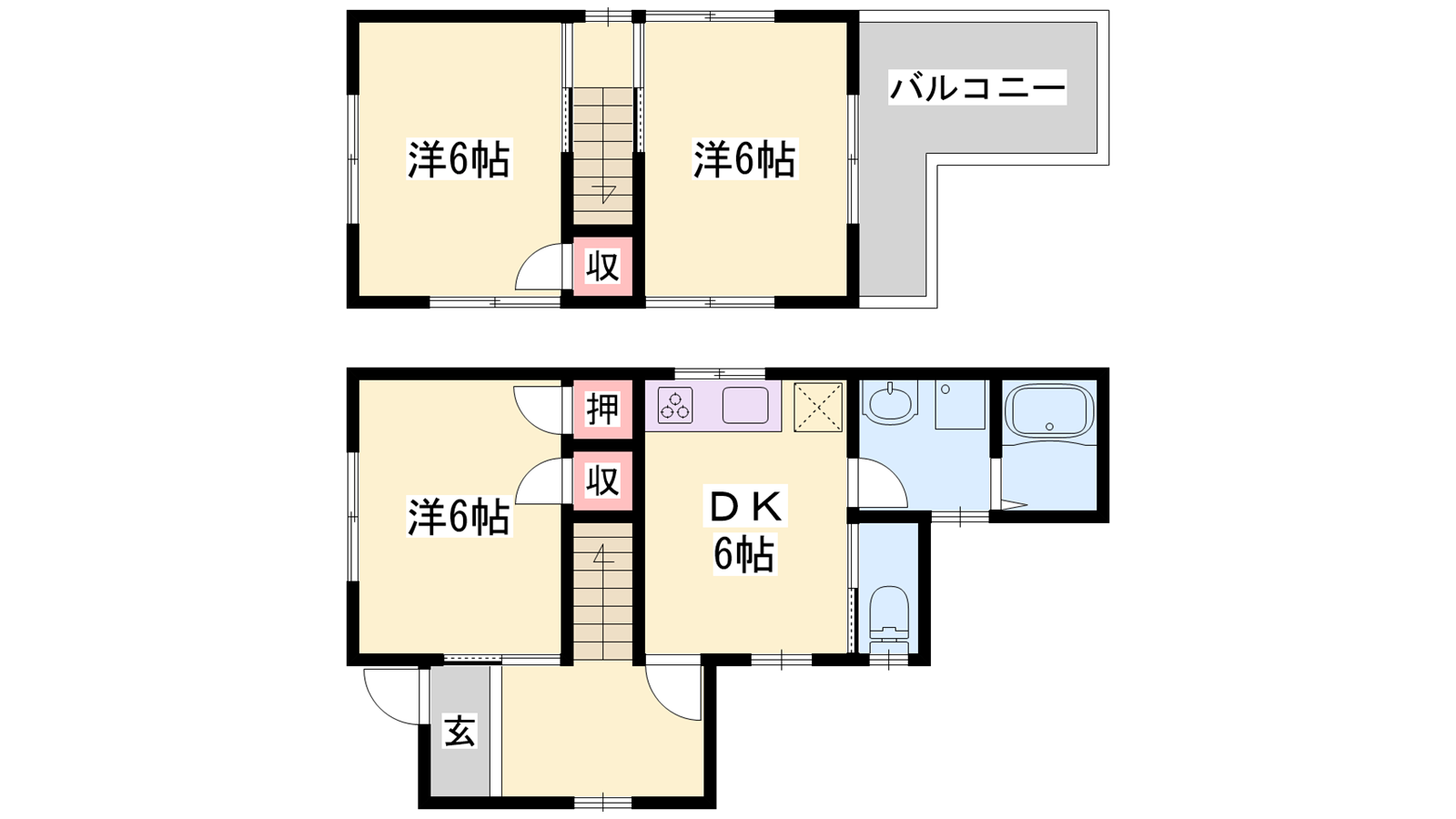 - DK6帖、洋室6帖、洋室6帖、洋室6帖