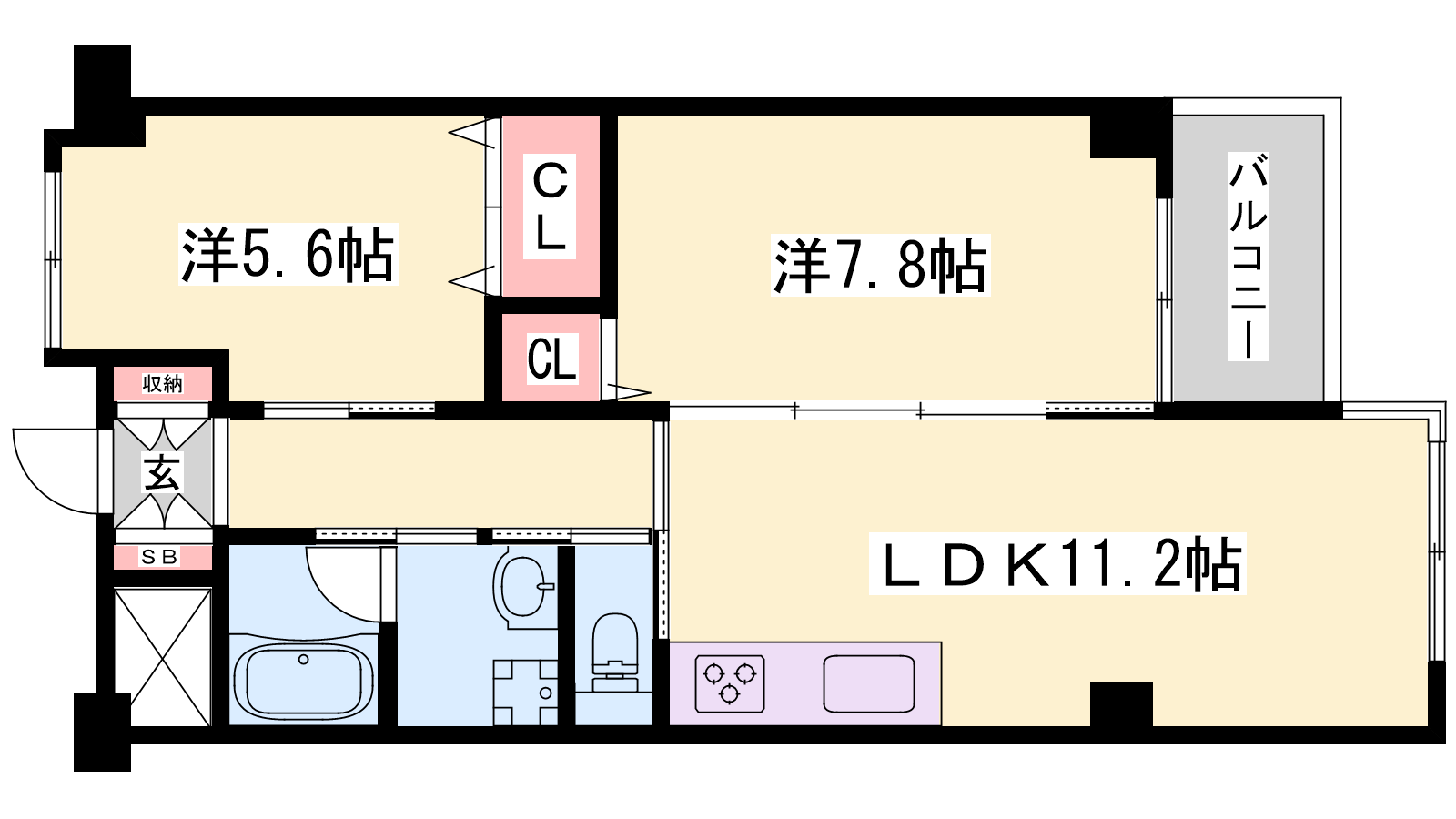 - LDK11.2帖、洋室7.8帖、洋室5.6帖
