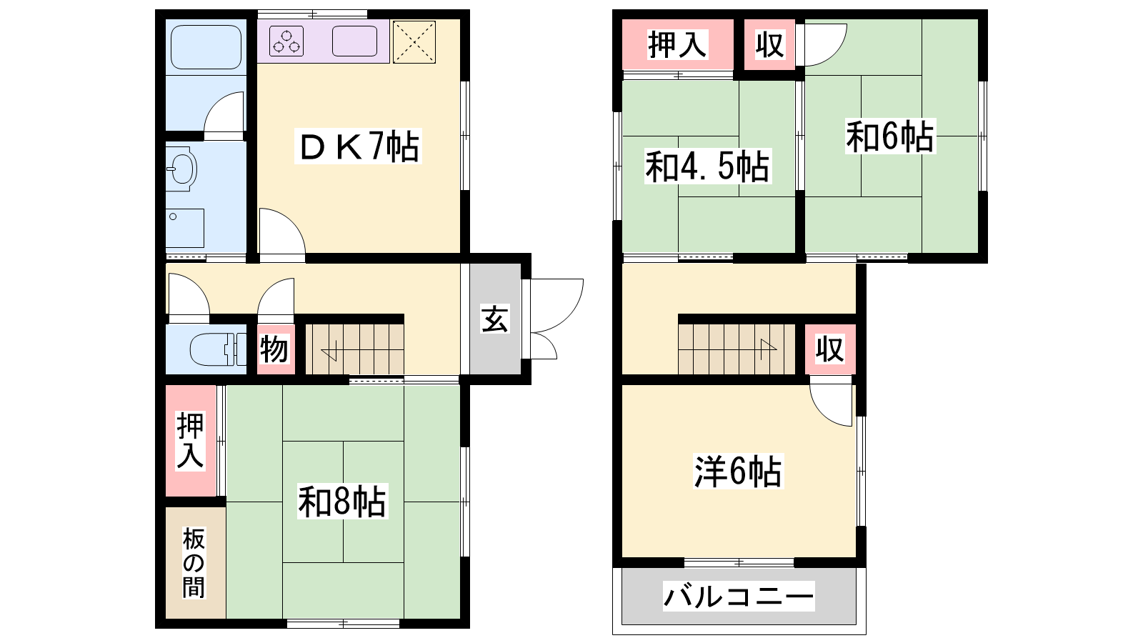 - DK7帖、和室8帖、和室6帖、和室4.5帖、洋室6帖