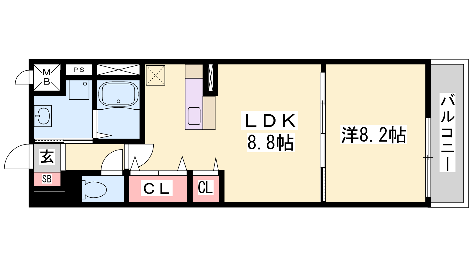 - LDK8.8帖、洋室8.2帖