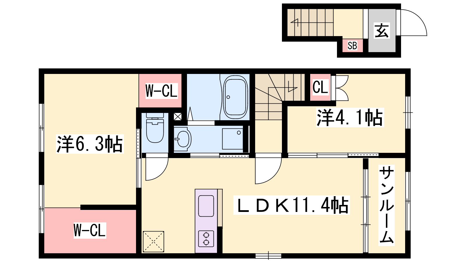 - LDK11.4帖、洋室6.3帖、洋室4.1帖