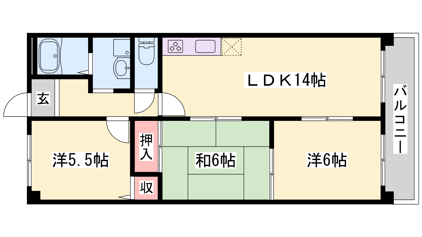 - LDK14帖、和室6帖、洋室6帖、洋室5.5帖