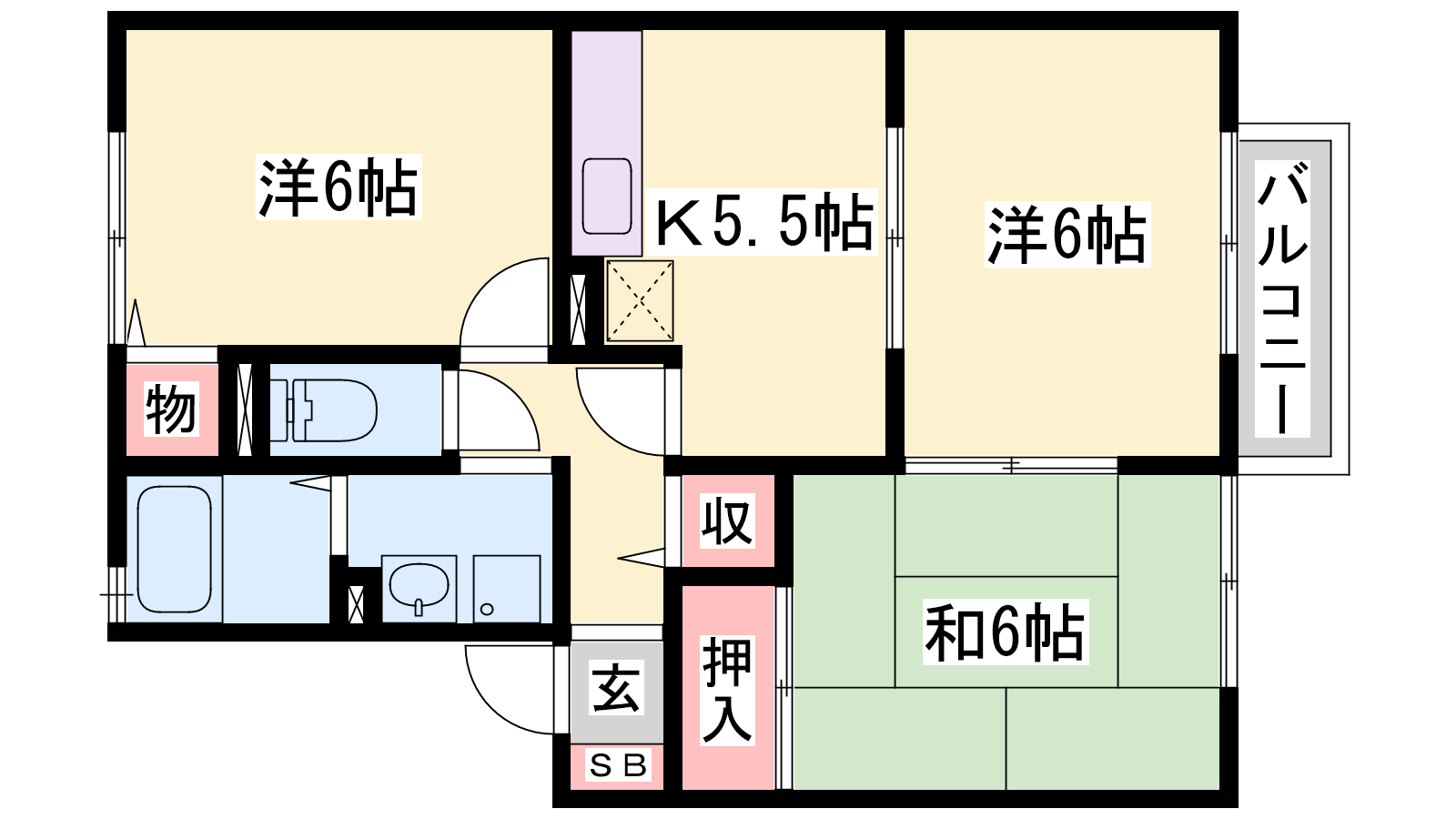 - K5.5帖、洋室6帖、洋室6帖、和室6帖
