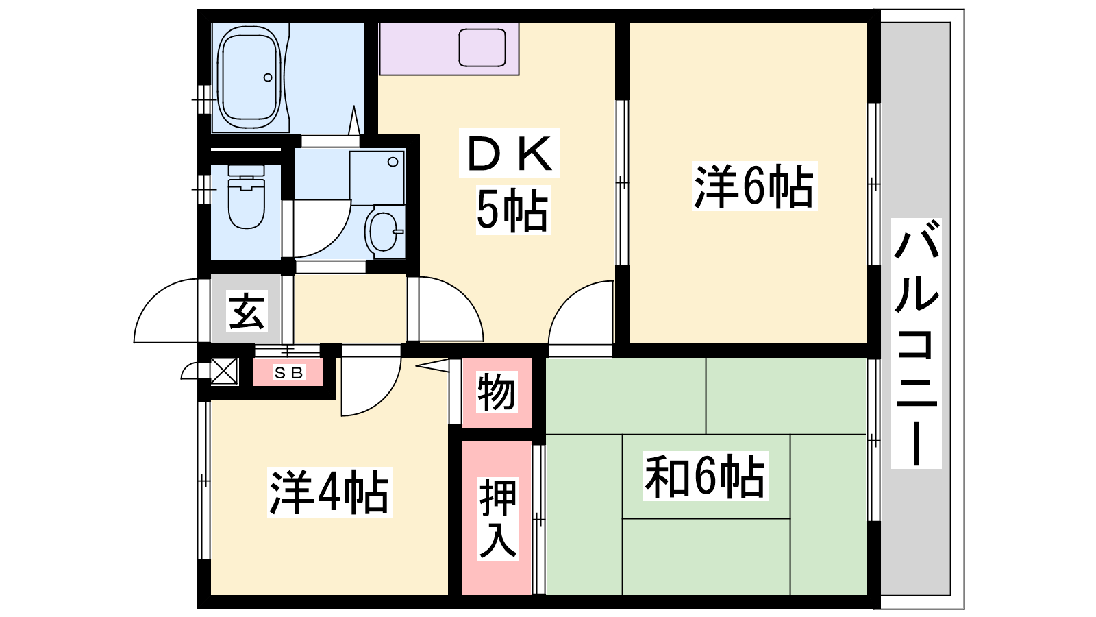 - DK5.5帖、洋室6帖、和室6帖、洋室4帖