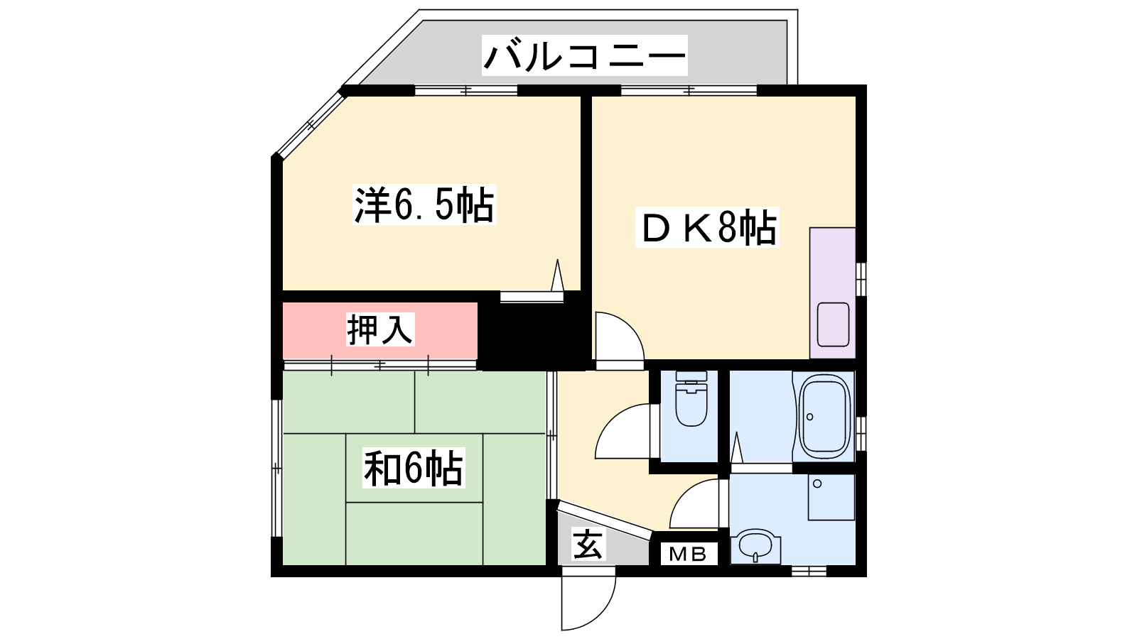 - DK8帖、洋室6.5帖、和室6帖