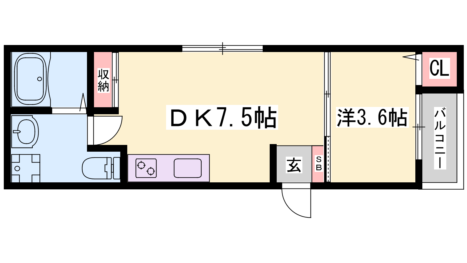 - DK7.5帖、洋室3.6帖