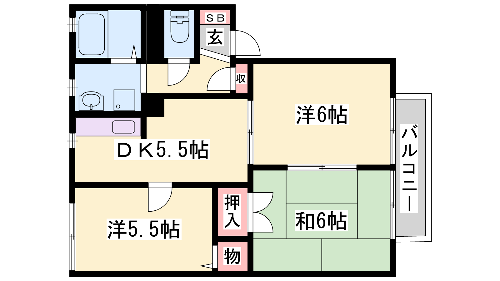 - DK5.5帖、洋室6帖、和室6帖、洋室5.5帖