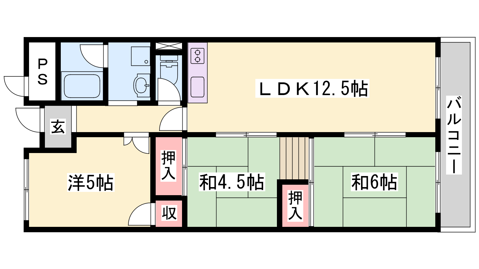 - LDK12.5帖、和室6帖、洋室5帖、和室4.5帖