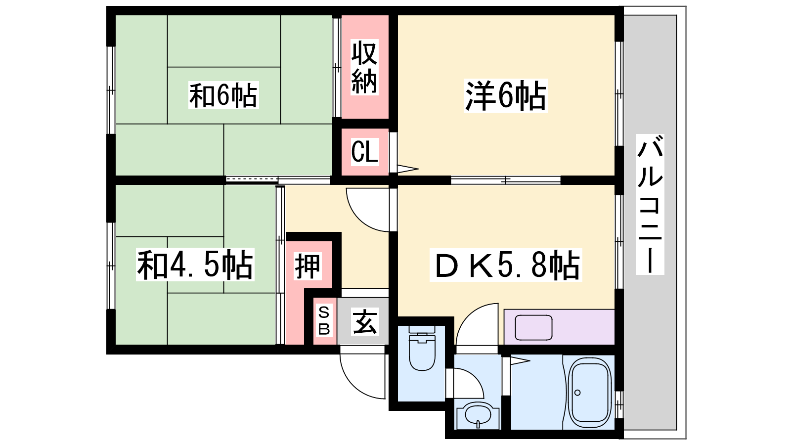 - DK5.8帖、洋室6帖、和室6帖、和室4.5帖