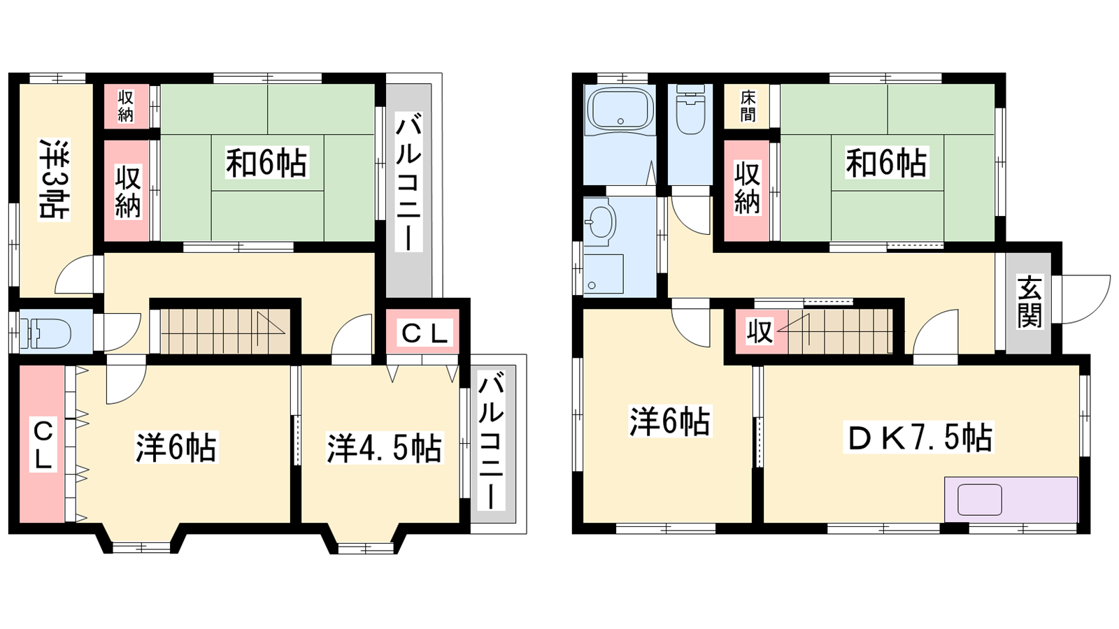 - DK7.5帖、洋室6帖、洋室6帖、洋室4.5帖、洋室3帖、和室6帖