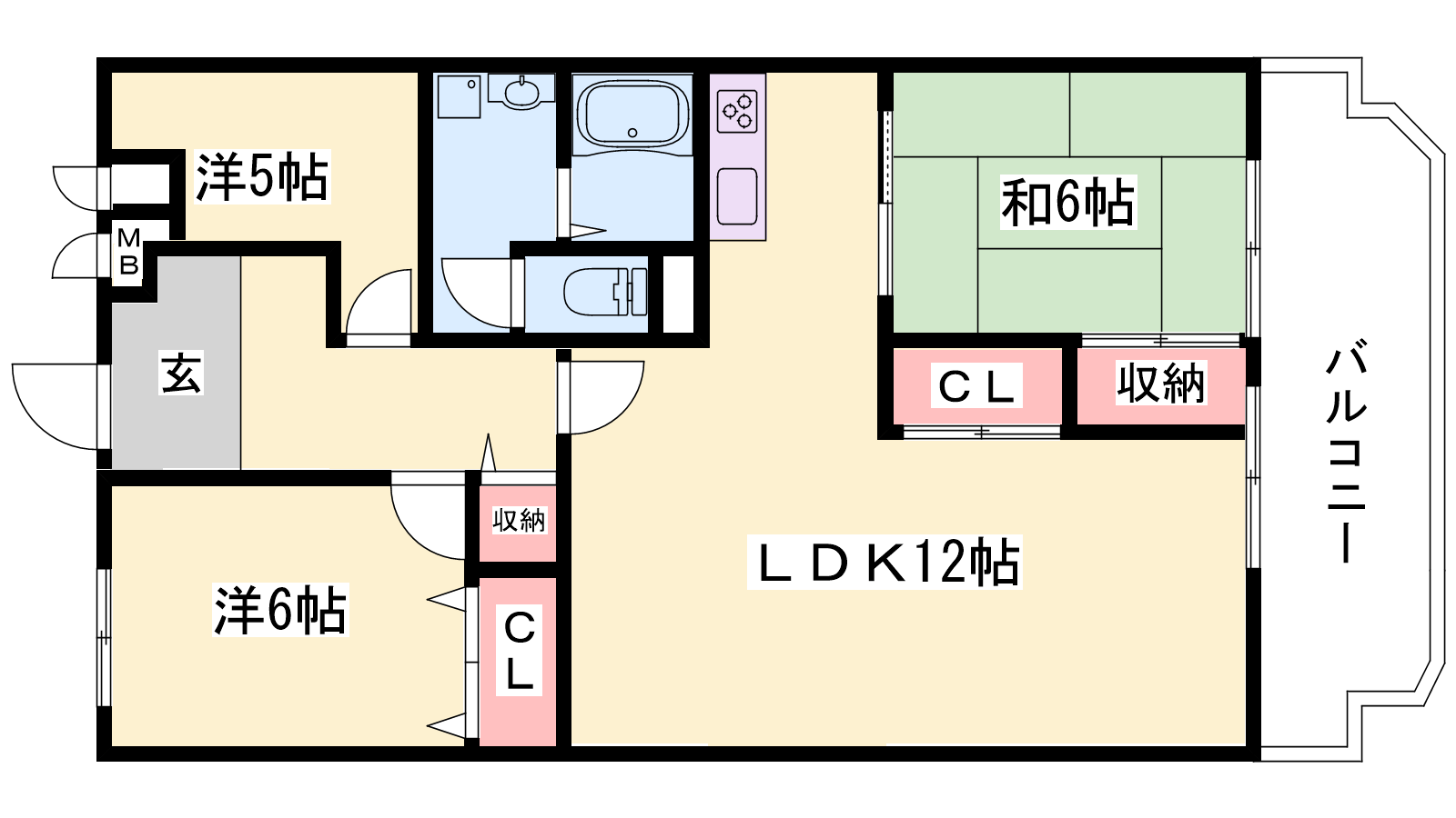 - LDK12帖、洋室6帖、洋室5帖、和室6帖