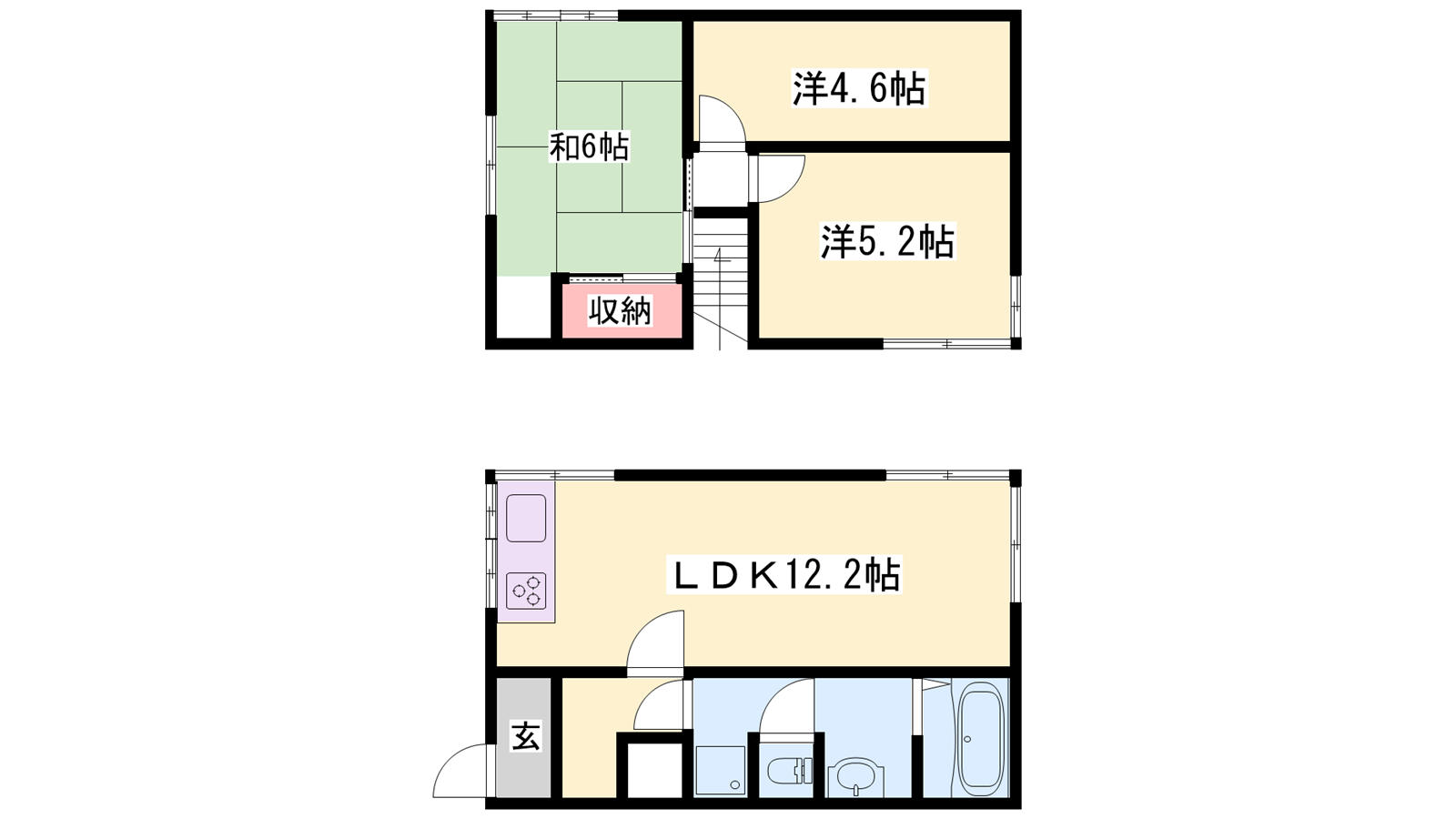 - LDK12.2帖、洋室5.2帖、洋室4.6帖、和室6帖