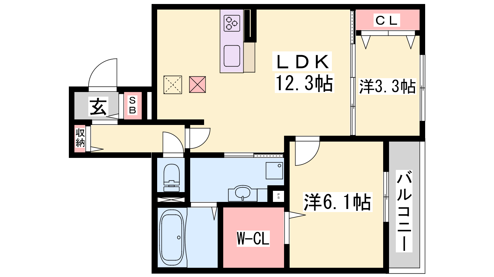 - LDK12.3帖、洋室6.1帖、洋室3.3帖
