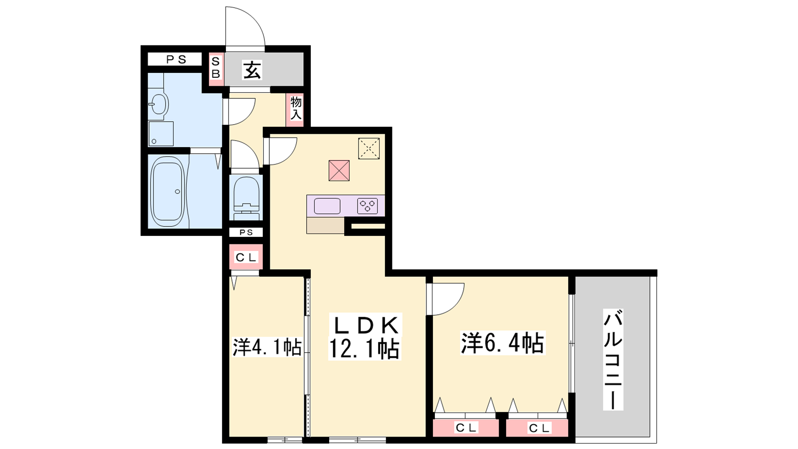 - LDK12.1帖、洋室6.4帖、洋室4.1帖