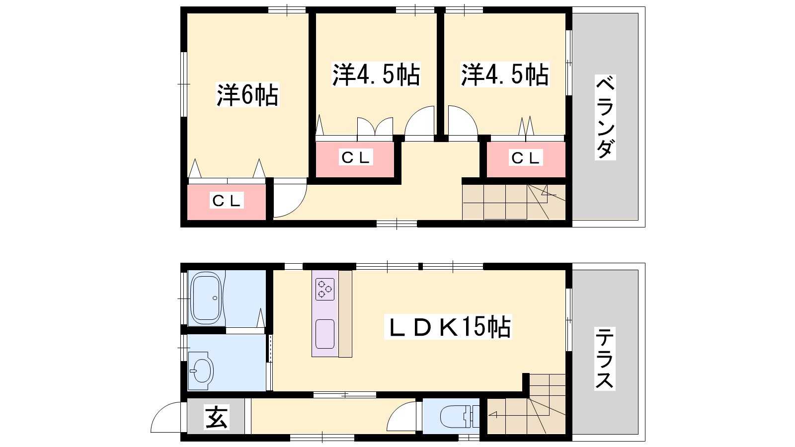 - LDK15帖、洋室6帖、洋室4.5帖、洋室4.5帖