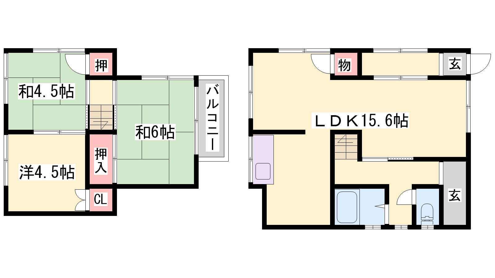 - LDK15.6帖、洋室4.5帖、和室6帖、和室4.5帖
