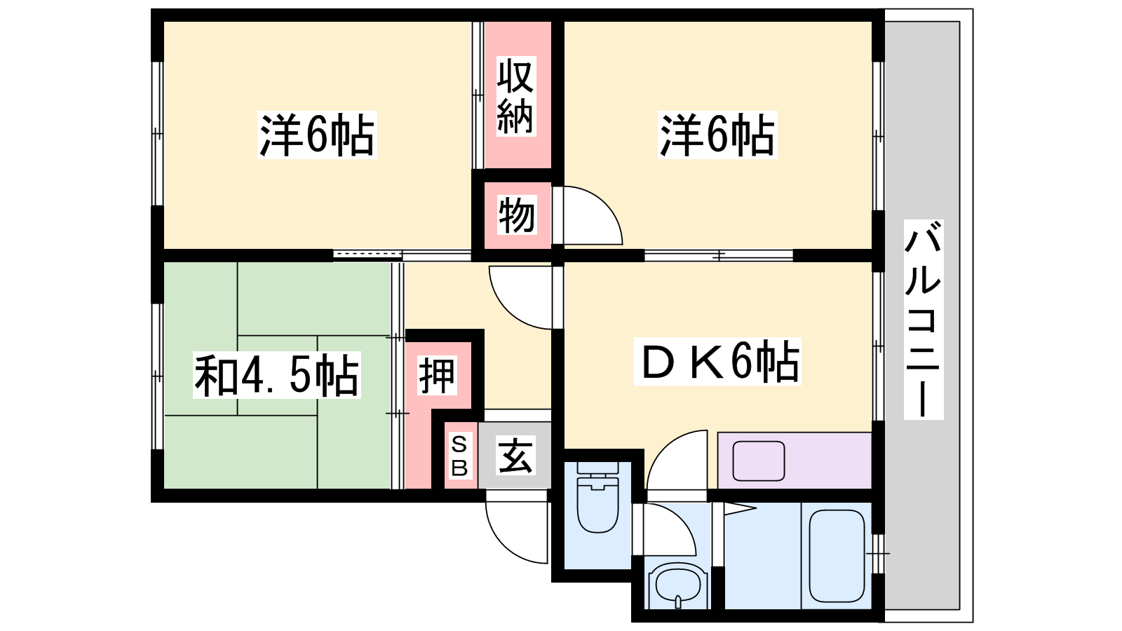 - DK6帖、洋室6帖、洋室6帖、和室4.5帖
