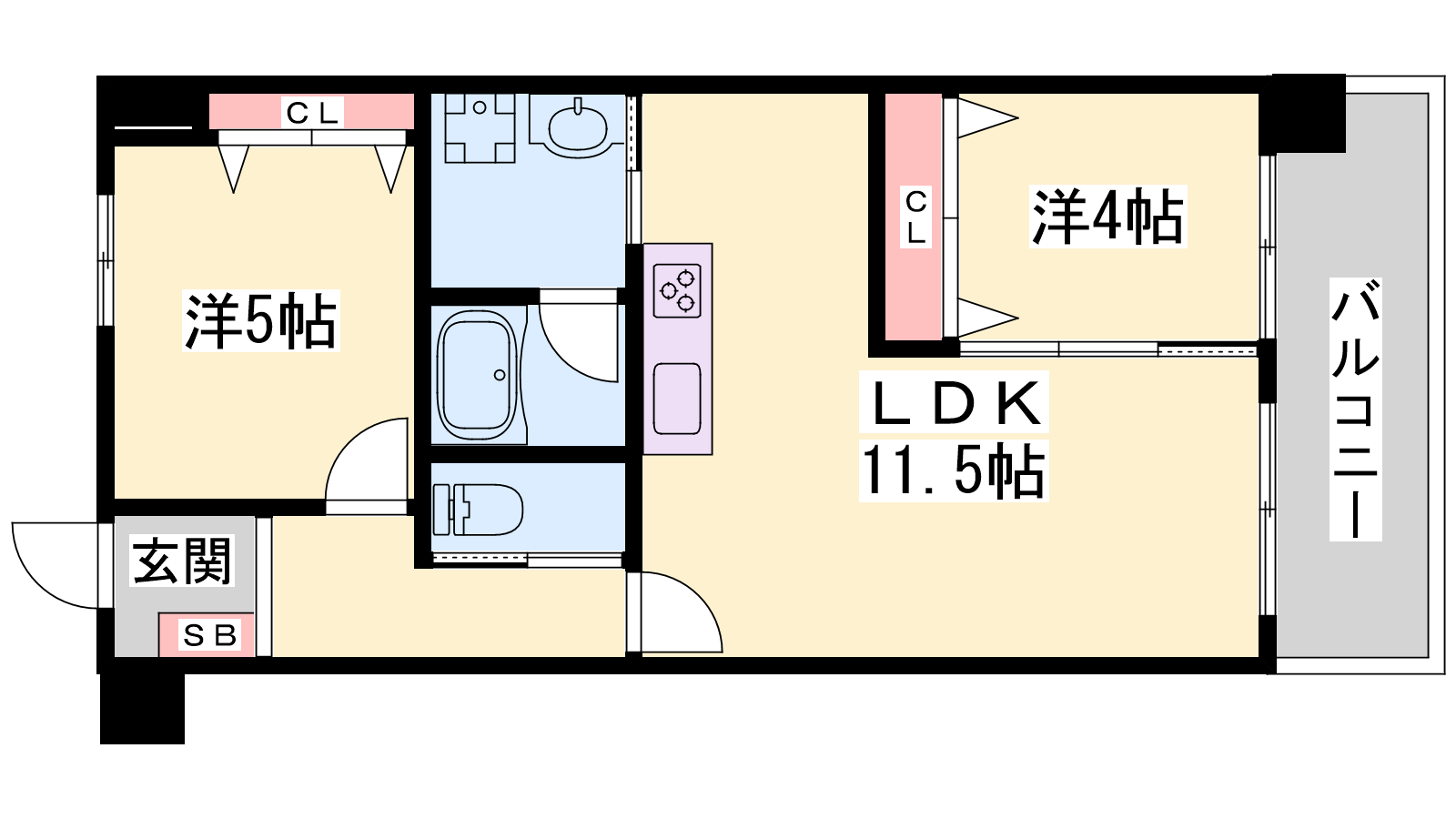 - LDK11.5帖、洋室5帖、洋室4帖