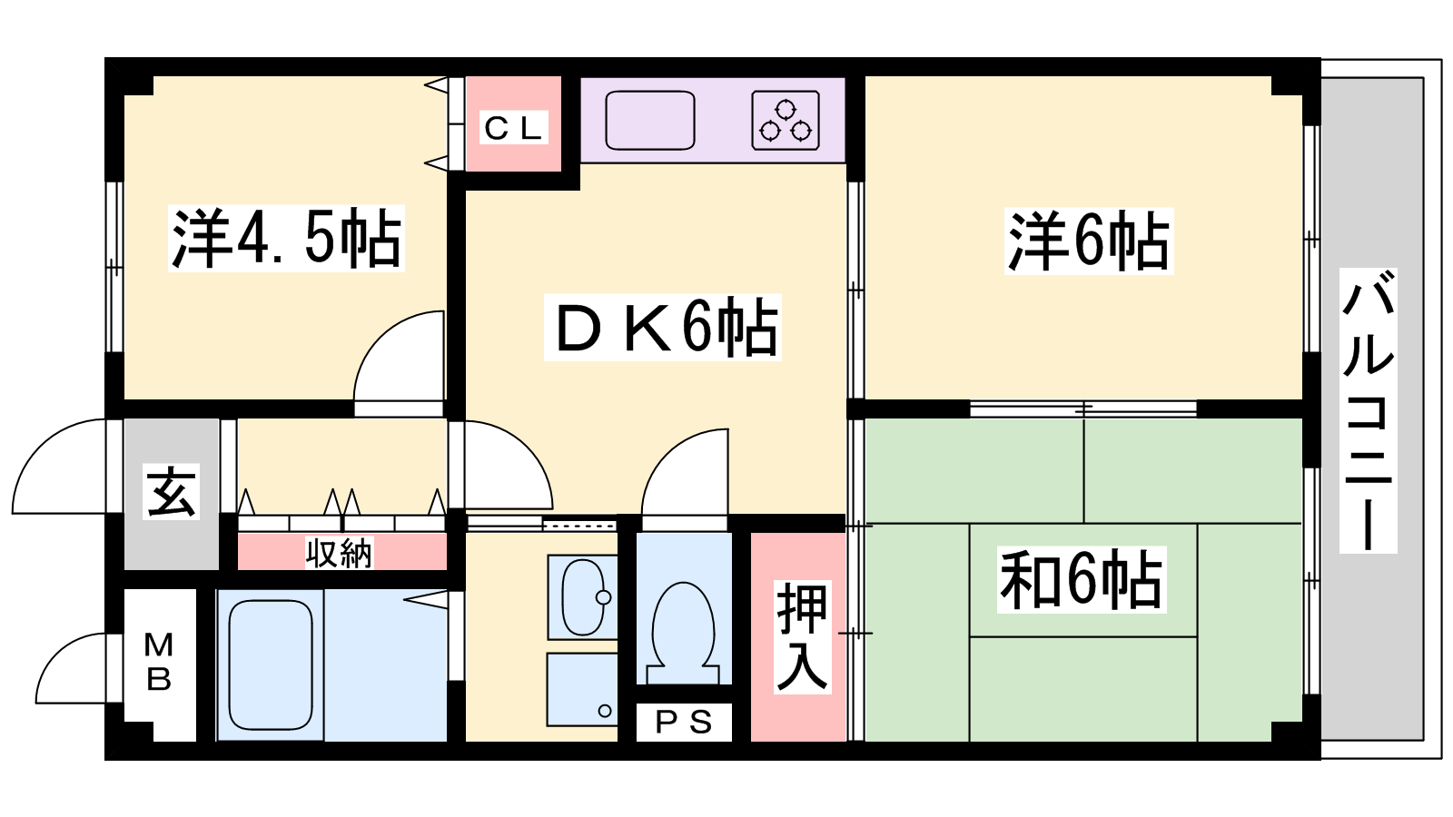 - DK6帖、洋室6帖、和室6帖、洋室4.5帖