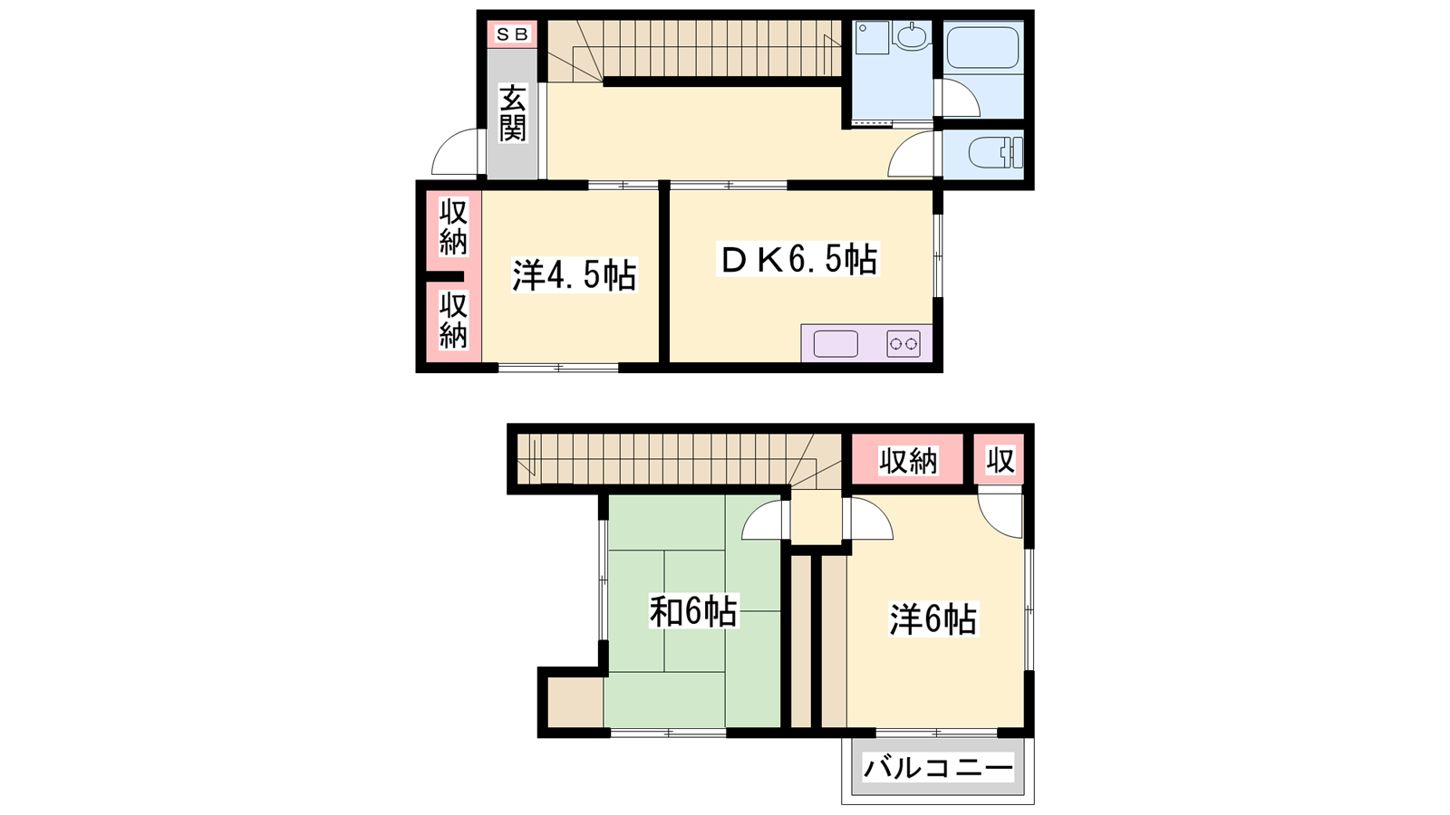 - DK6.5帖、洋室6帖、洋室4.5帖、和室6帖