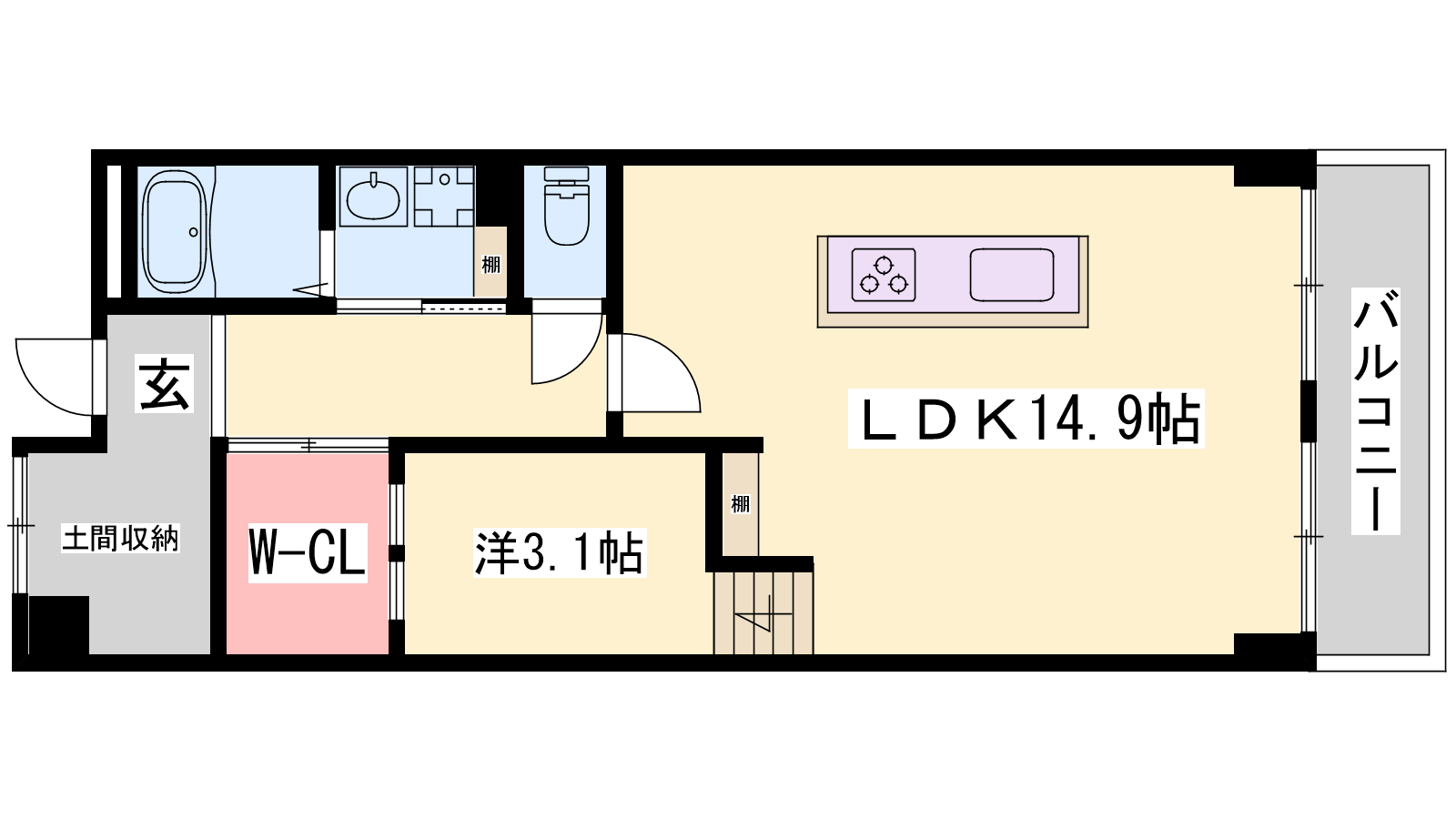 - LDK14.9帖、洋室3.1帖、S2帖