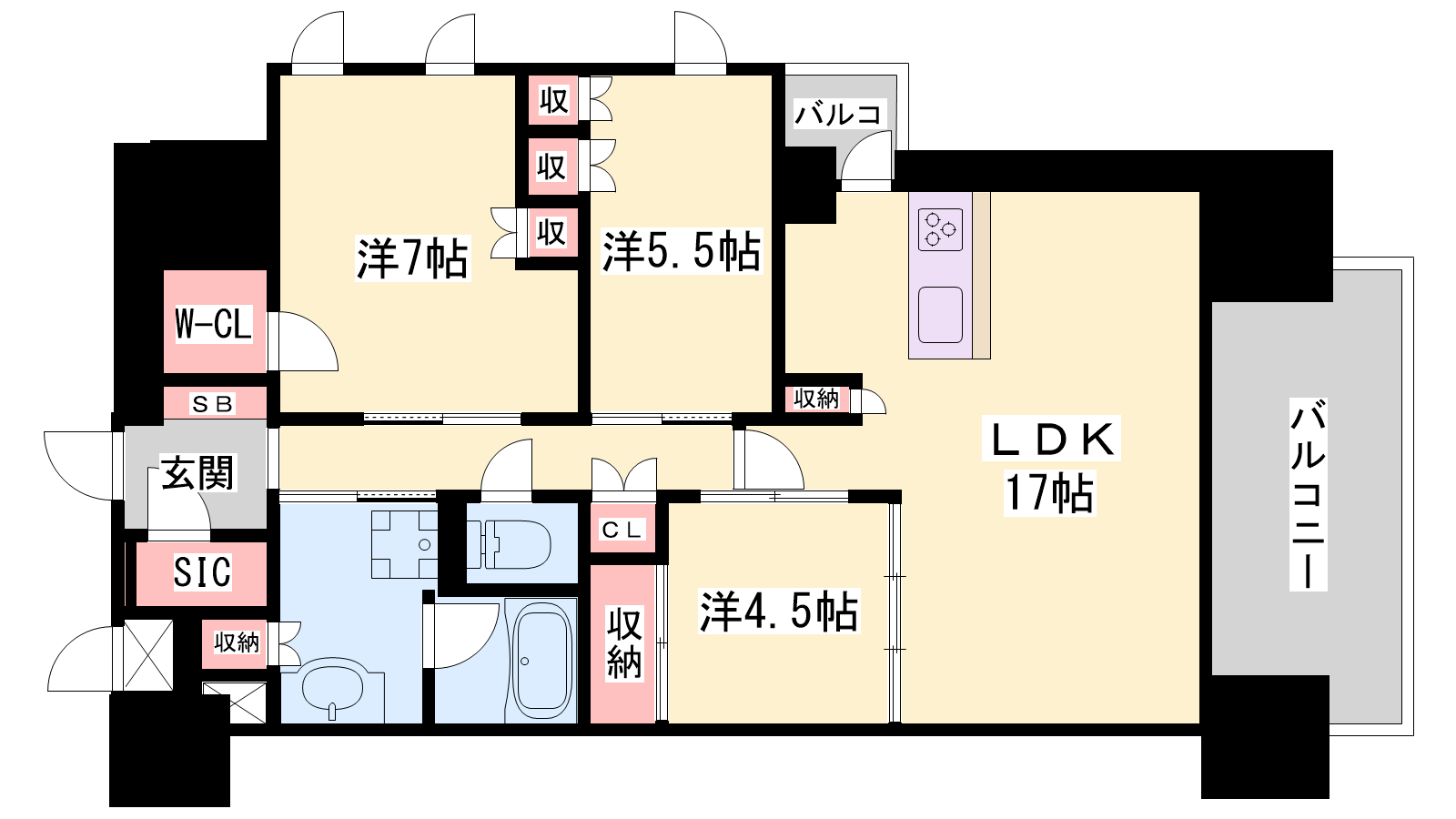 - LDK17帖、洋室7帖、洋室5.5帖、洋室4.5帖