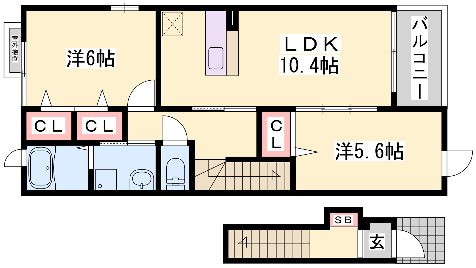 - LDK10.4帖、洋室6帖、洋室5.6帖