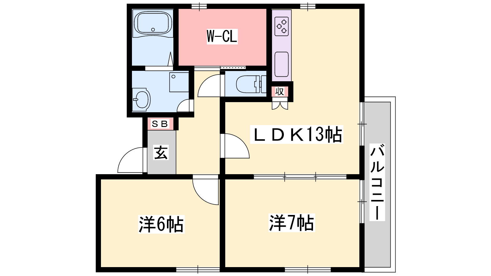 - LDK13.5帖、洋室8帖、洋室6帖