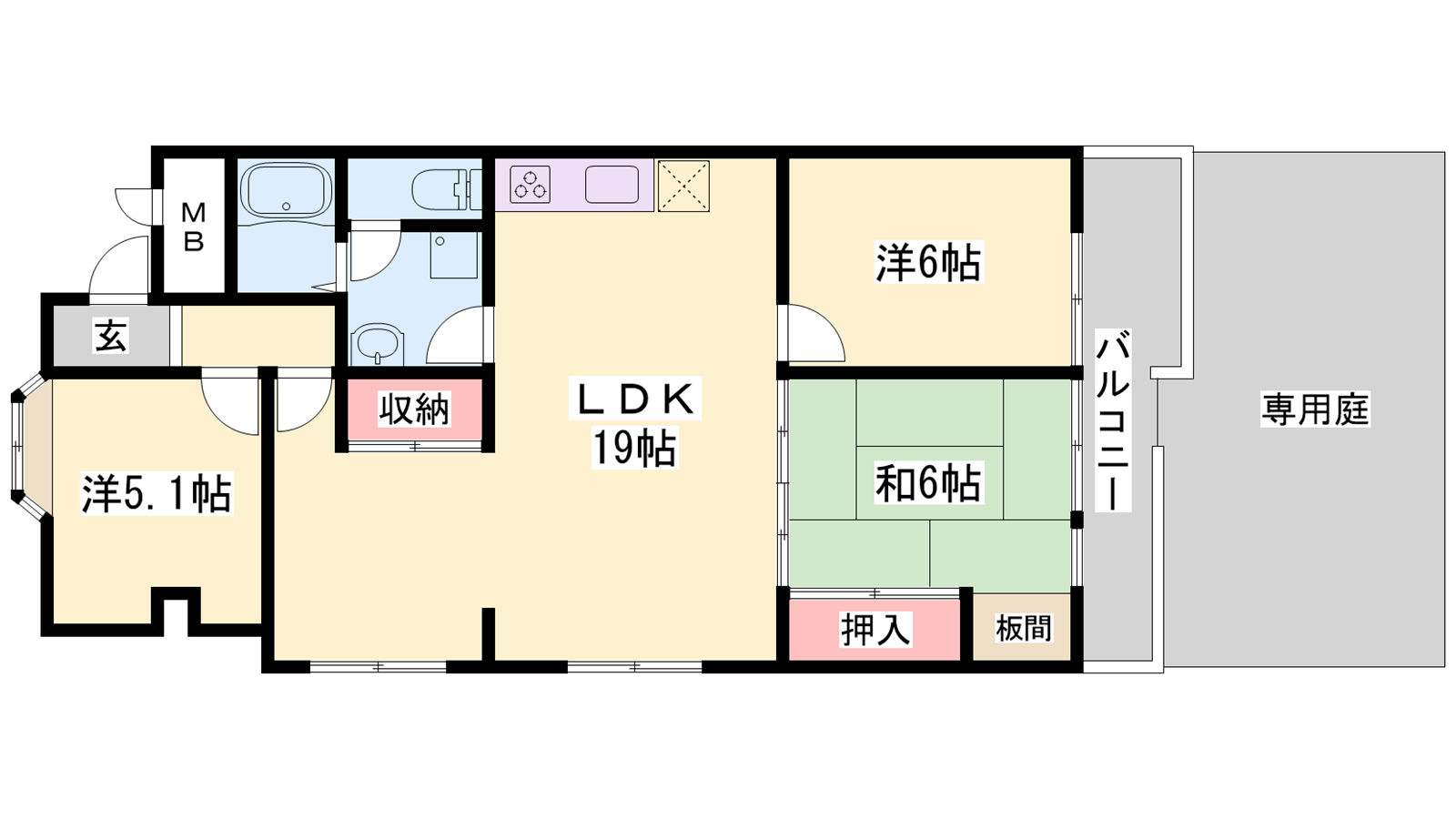 - LDK19帖、洋室6帖、洋室5.1帖、和室6帖
