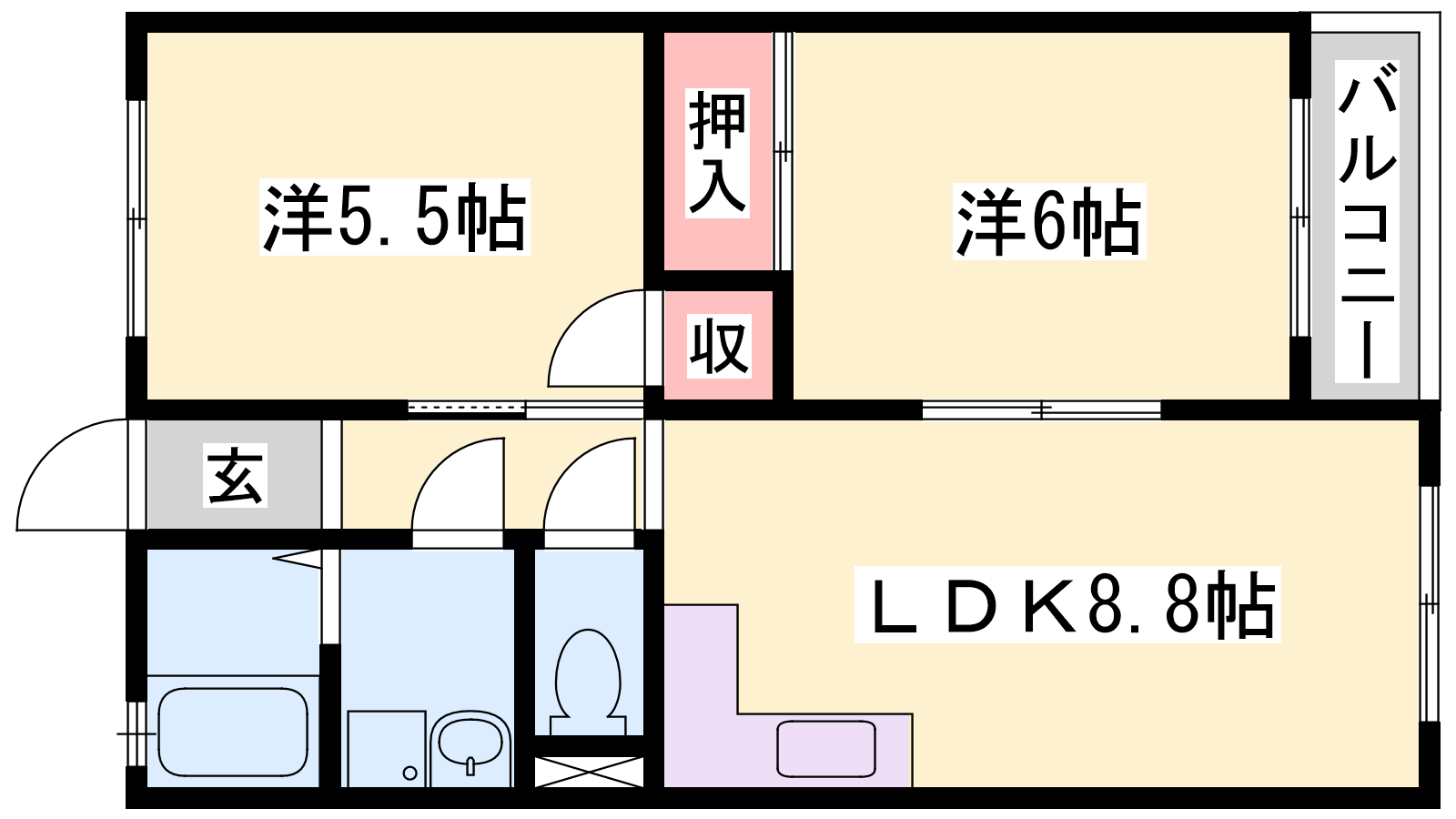 - LDK8.8帖、洋室6帖、洋室5.5帖