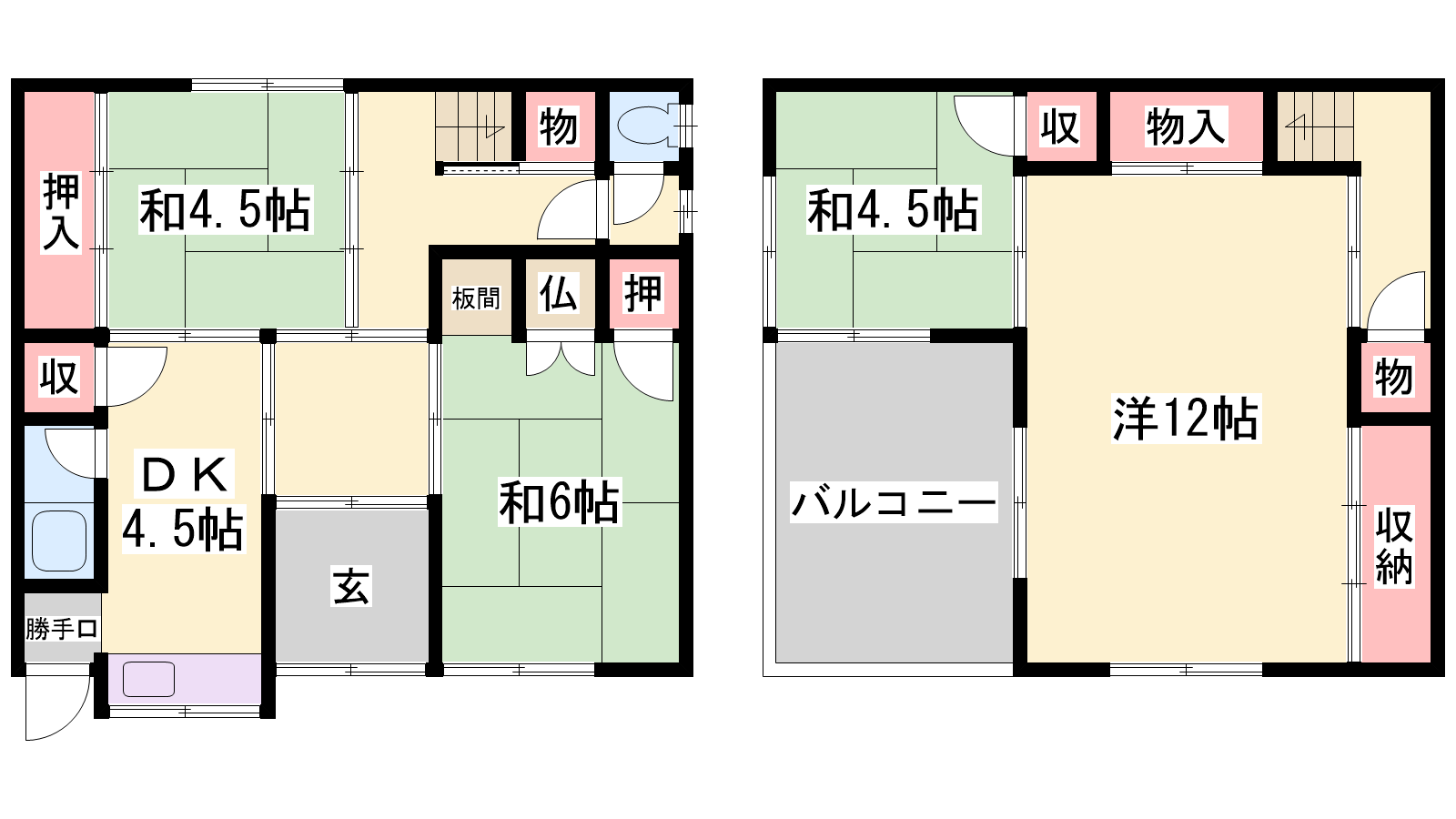 - DK4.5帖、洋室12帖、和室6帖、和室4.5帖、和室4.5帖、和室4.5帖