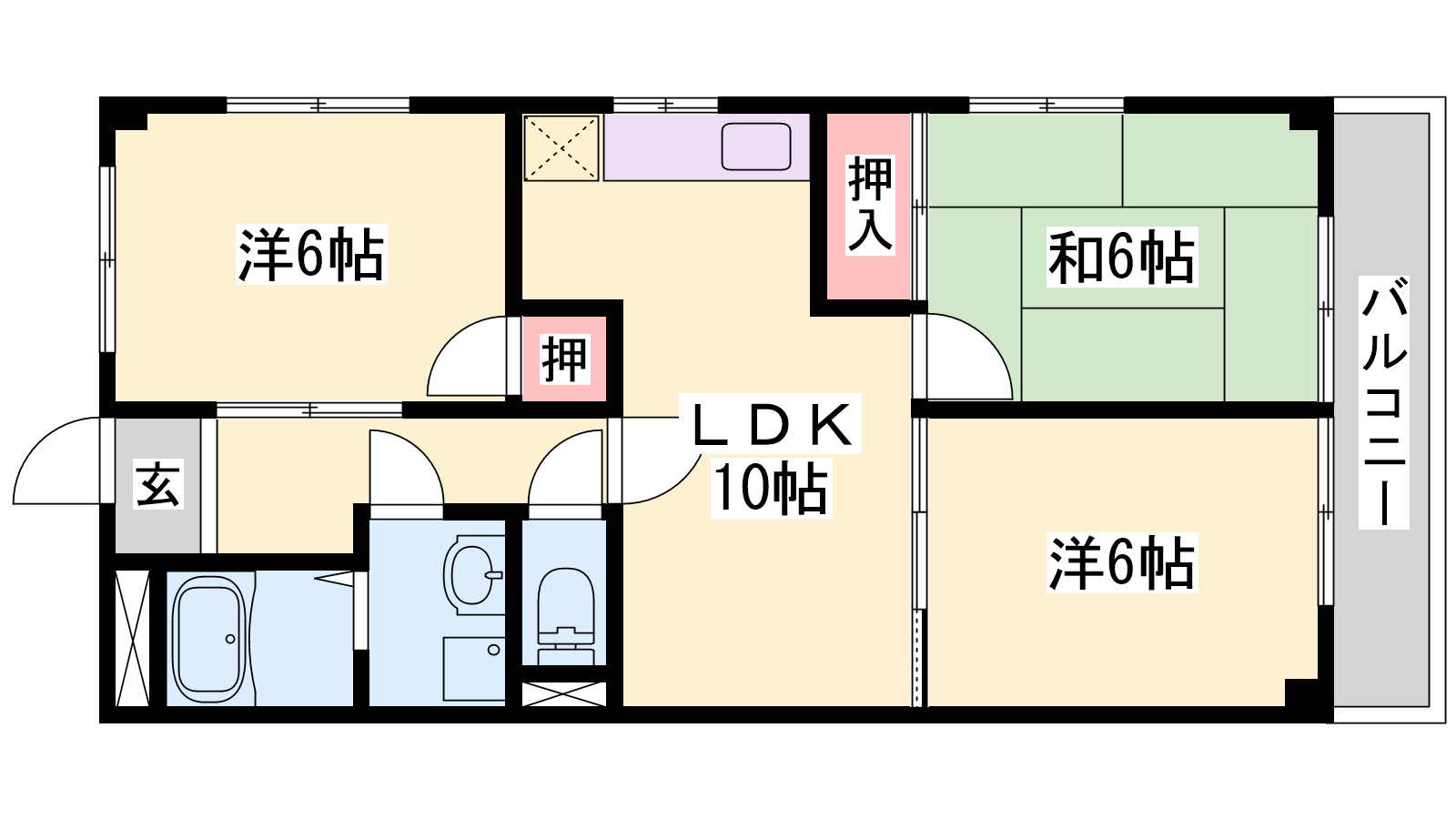 - LDK10帖、洋室6帖、洋室6帖、和室6帖