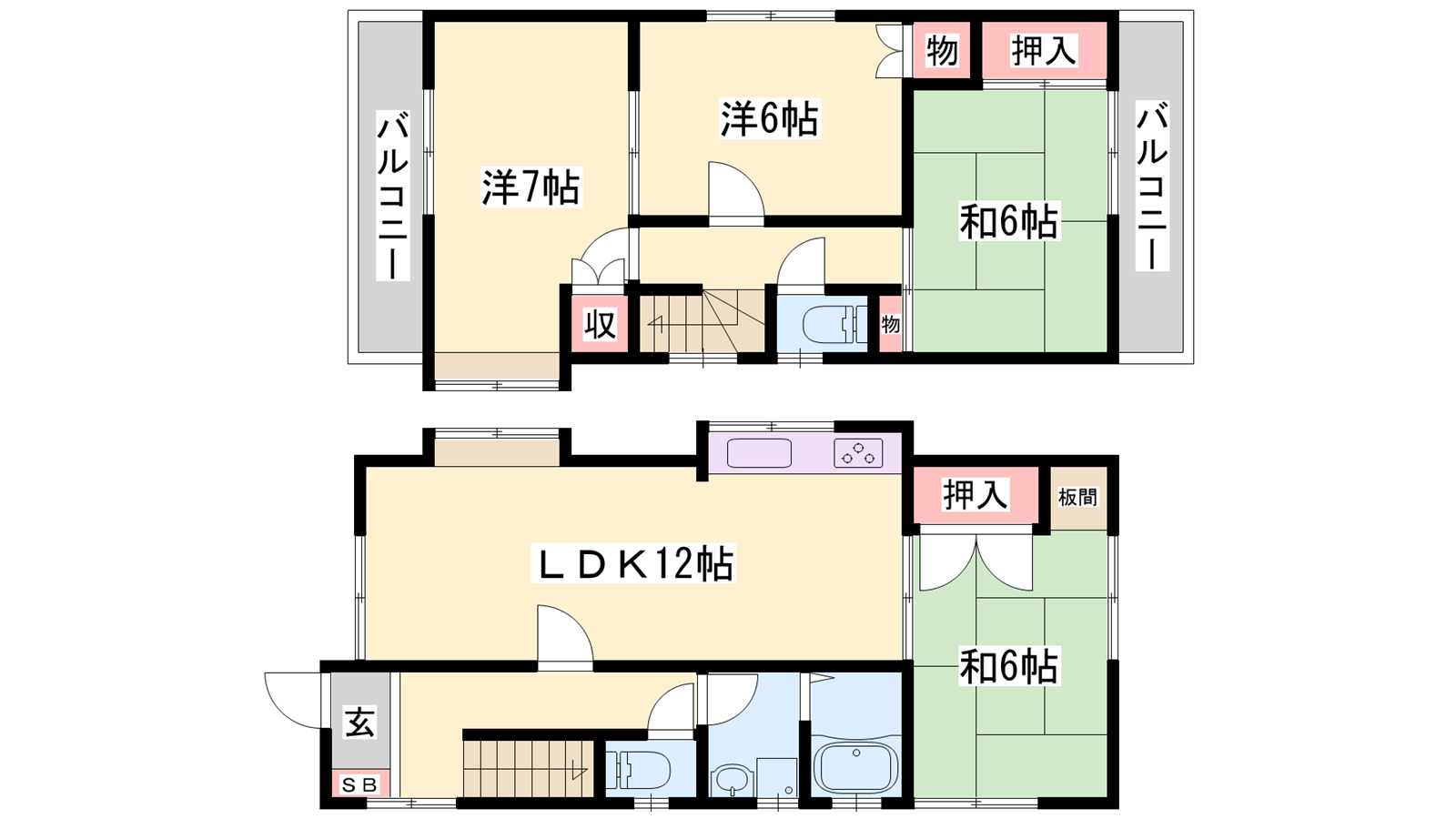 - LDK12帖、洋室6帖、洋室6帖、和室6帖、和室6帖