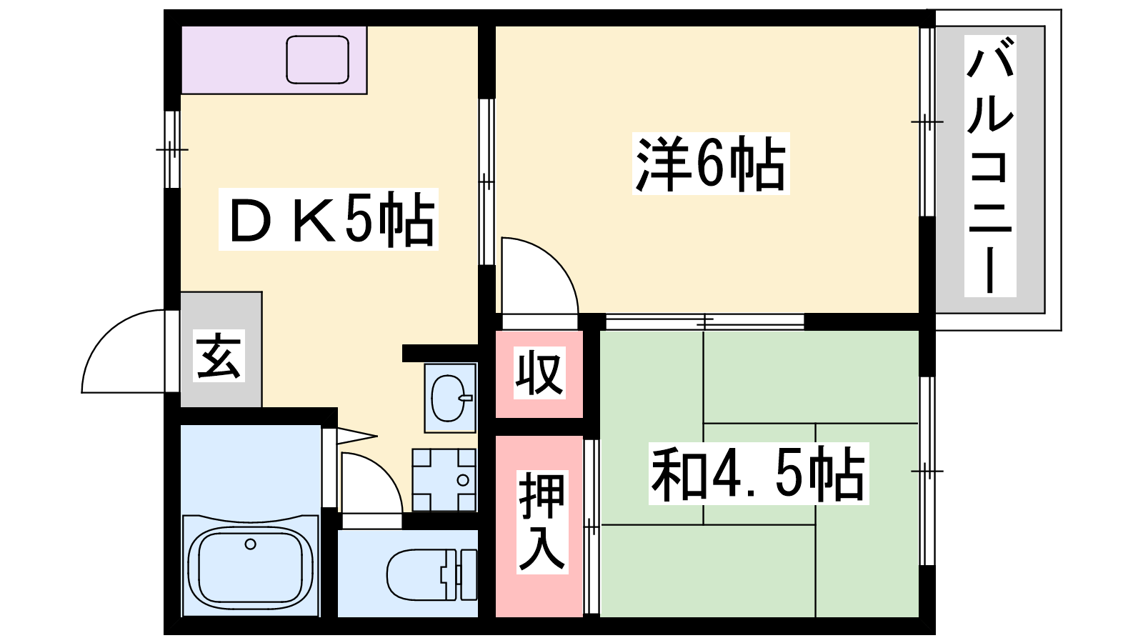 - DK5帖、洋室6帖、和室4.5帖