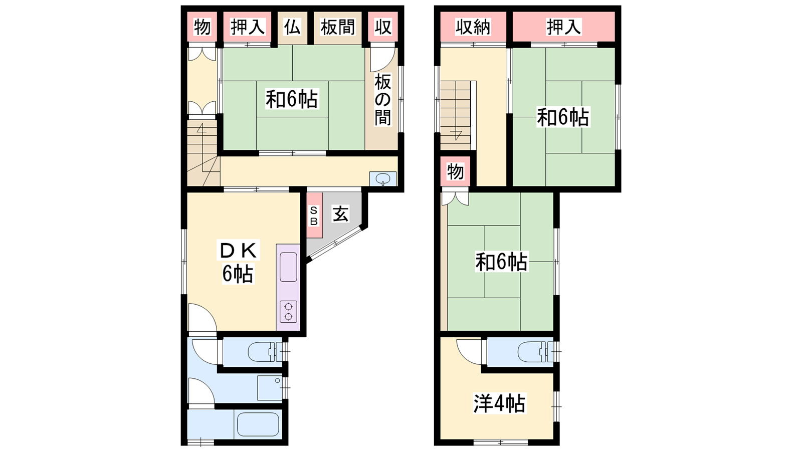 - DK6帖、和室6帖、和室6帖、和室6帖、洋室4.5帖