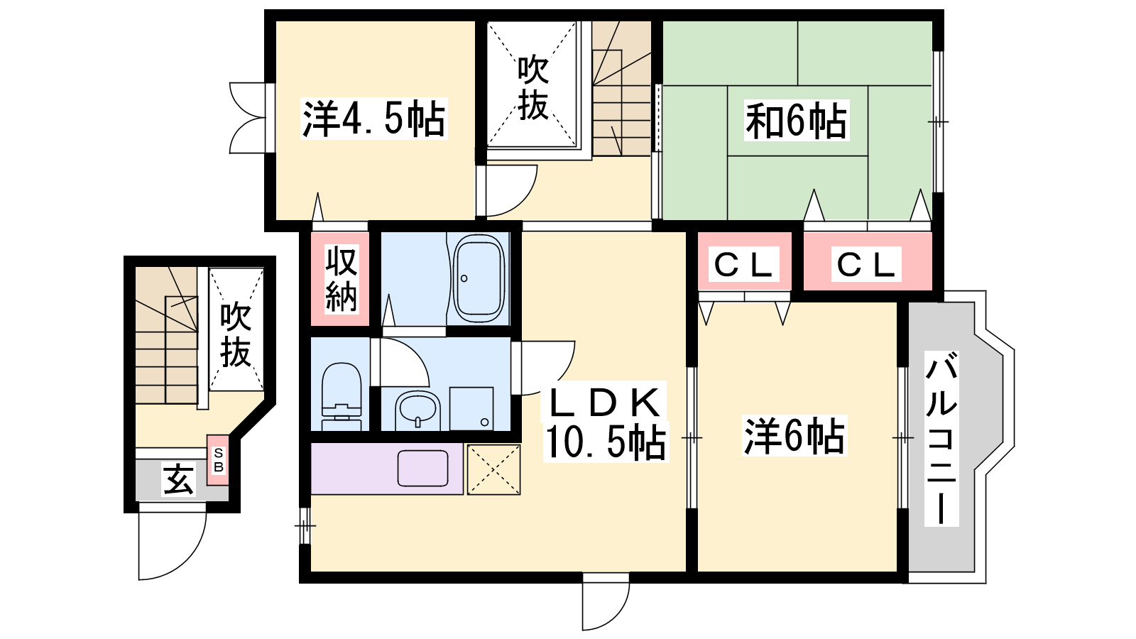 - LDK10.5帖、洋室6帖、洋室6帖、洋室4.5帖