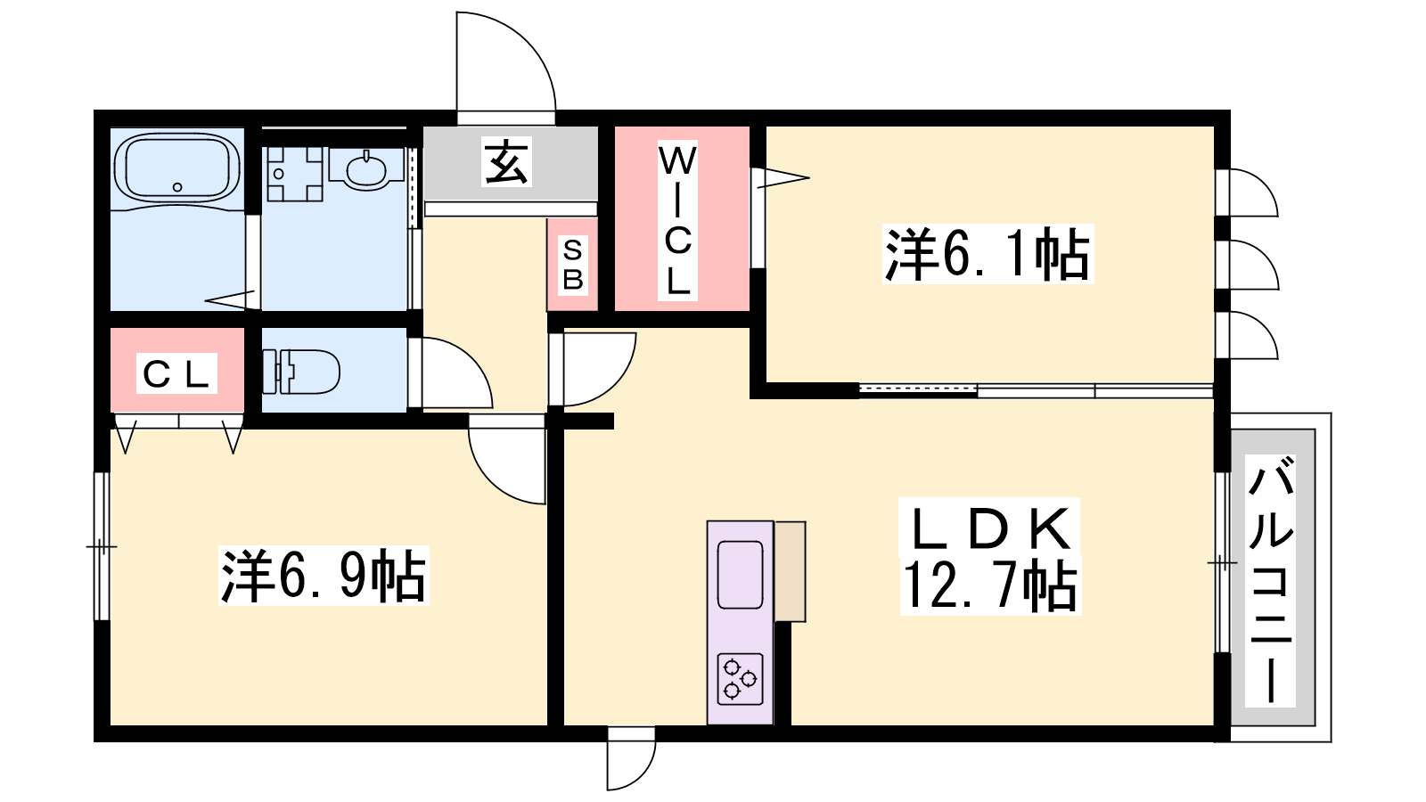 - LDK12.7帖、洋室6.9帖、洋室6.1帖