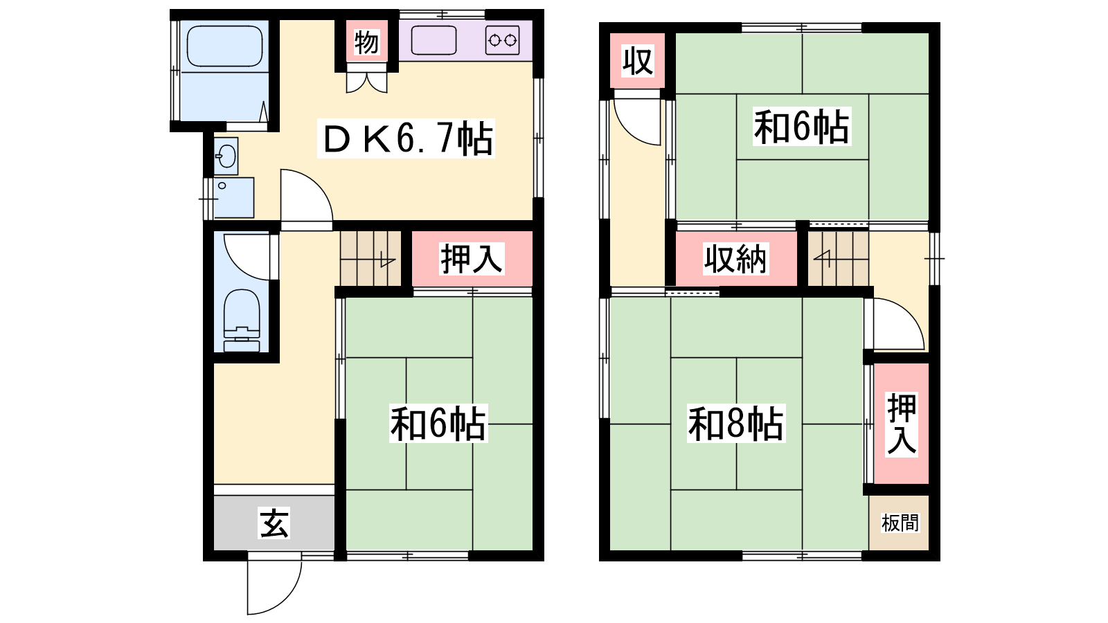 - DK6.7帖、和室8帖、和室6帖、和室6帖