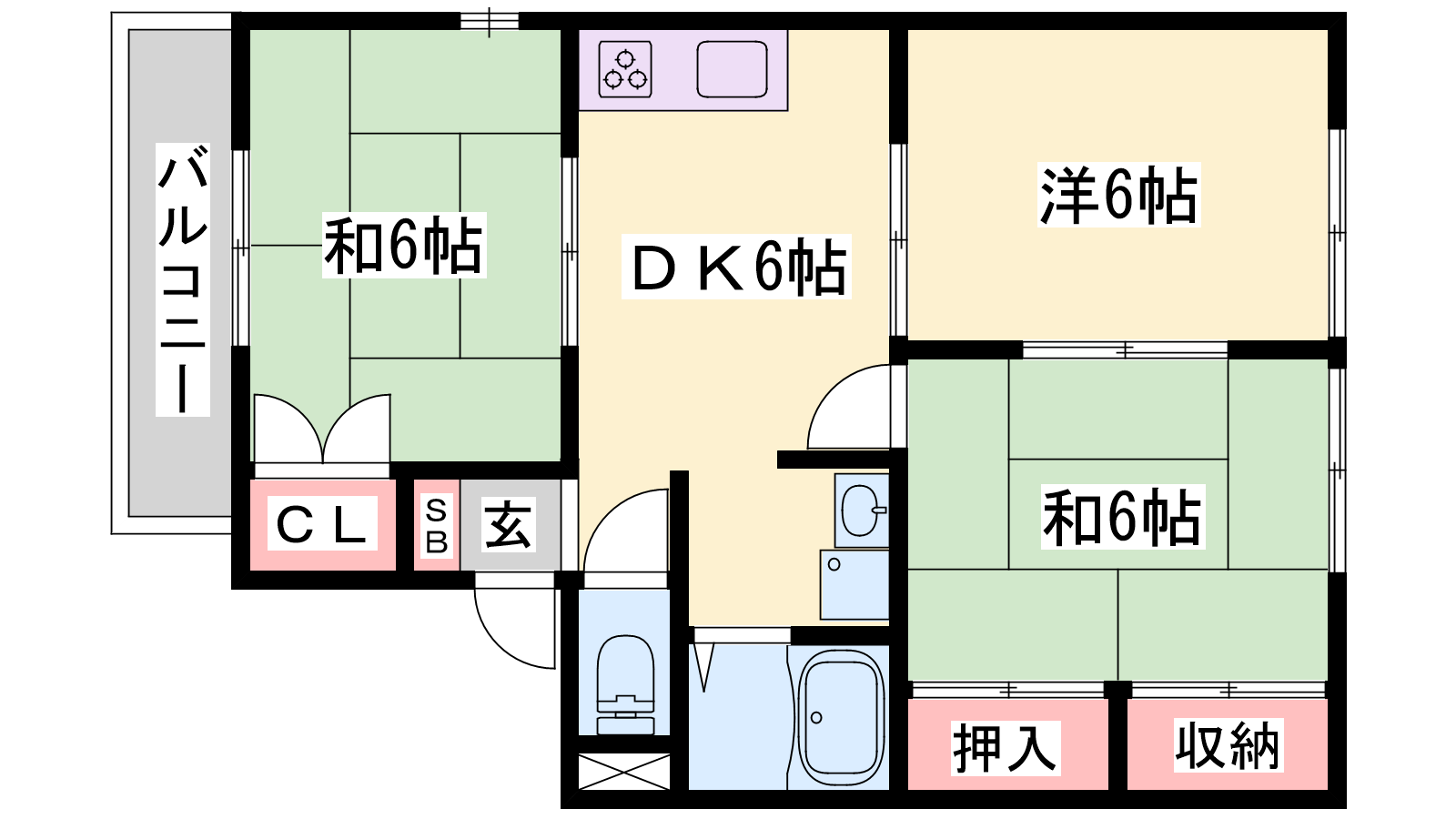 - DK6帖、洋室6帖、洋室6帖、和室6帖