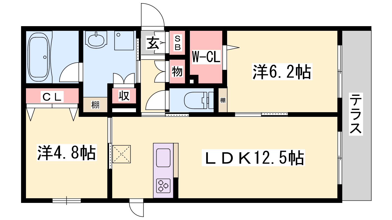 - LDK11.9帖、洋室6.2帖、洋室4.8帖