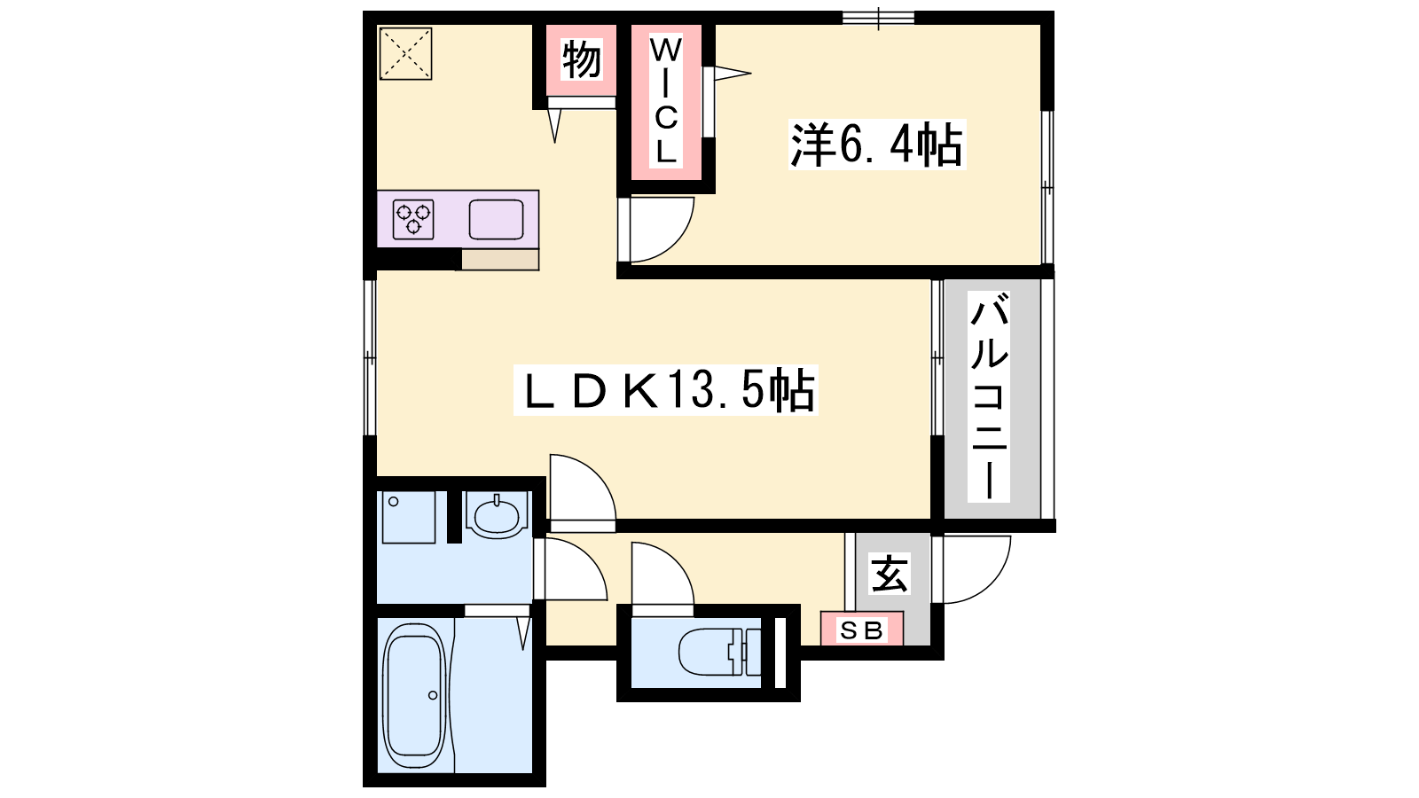 - LDK13.5帖、洋室6.4帖