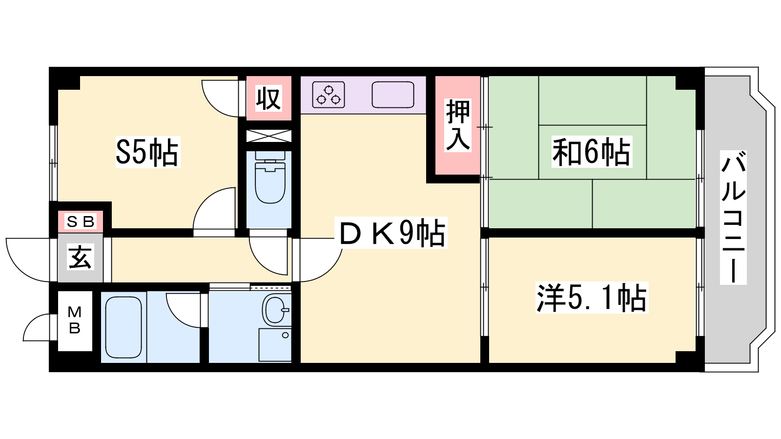 - DK9帖、和室6帖、洋室5.1帖、S5帖