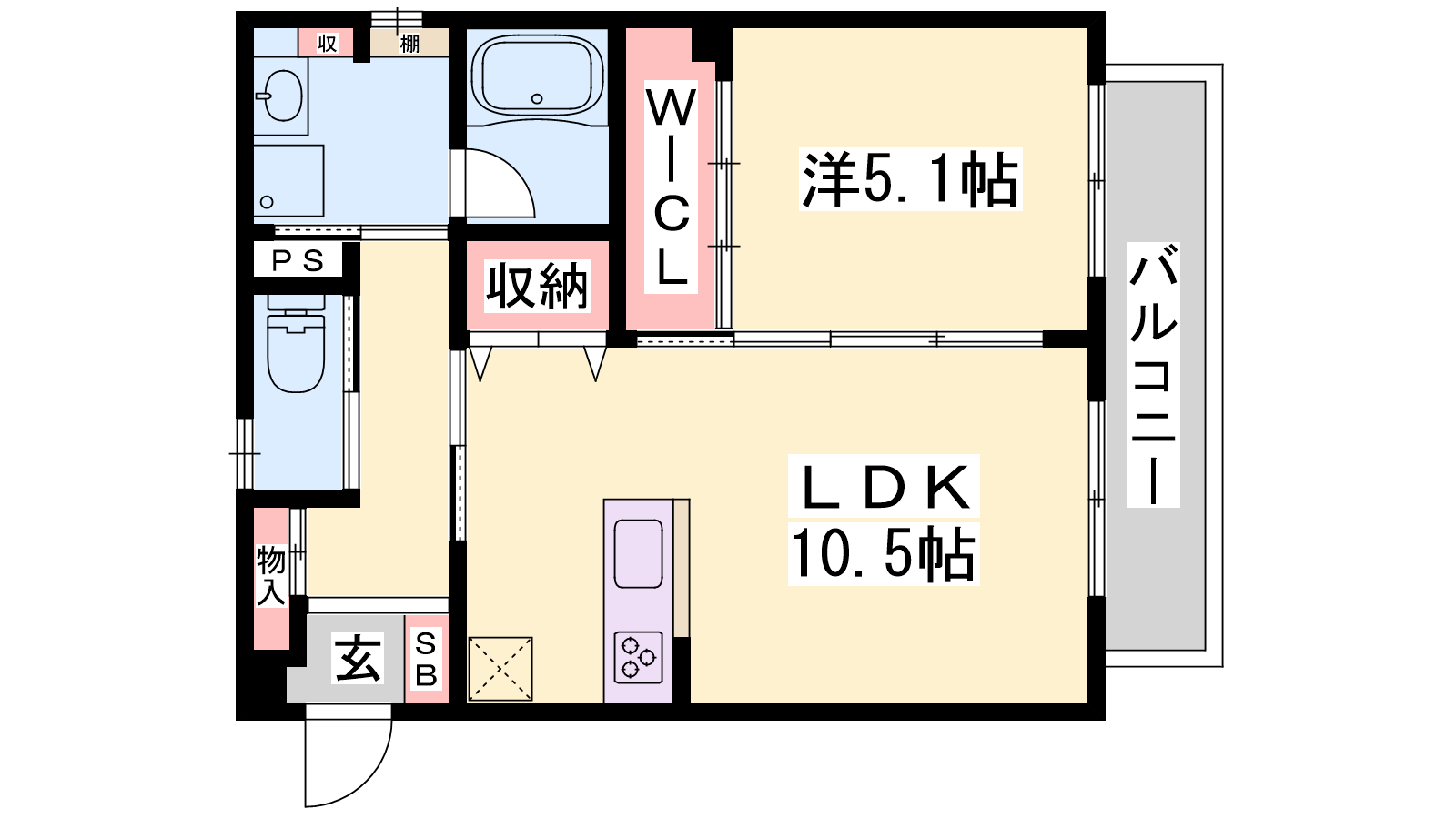 - LDK10.5帖、洋室5.1帖