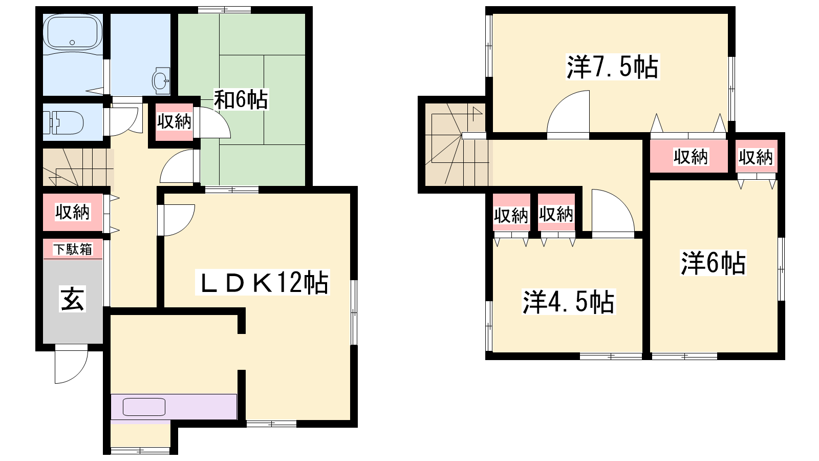 - LDK12帖、和室6帖、洋室7.5帖、洋室6帖、洋室4.5帖