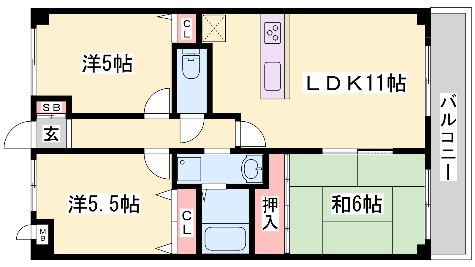 - LDK11帖、和室6帖、洋室5.5帖、洋室5帖