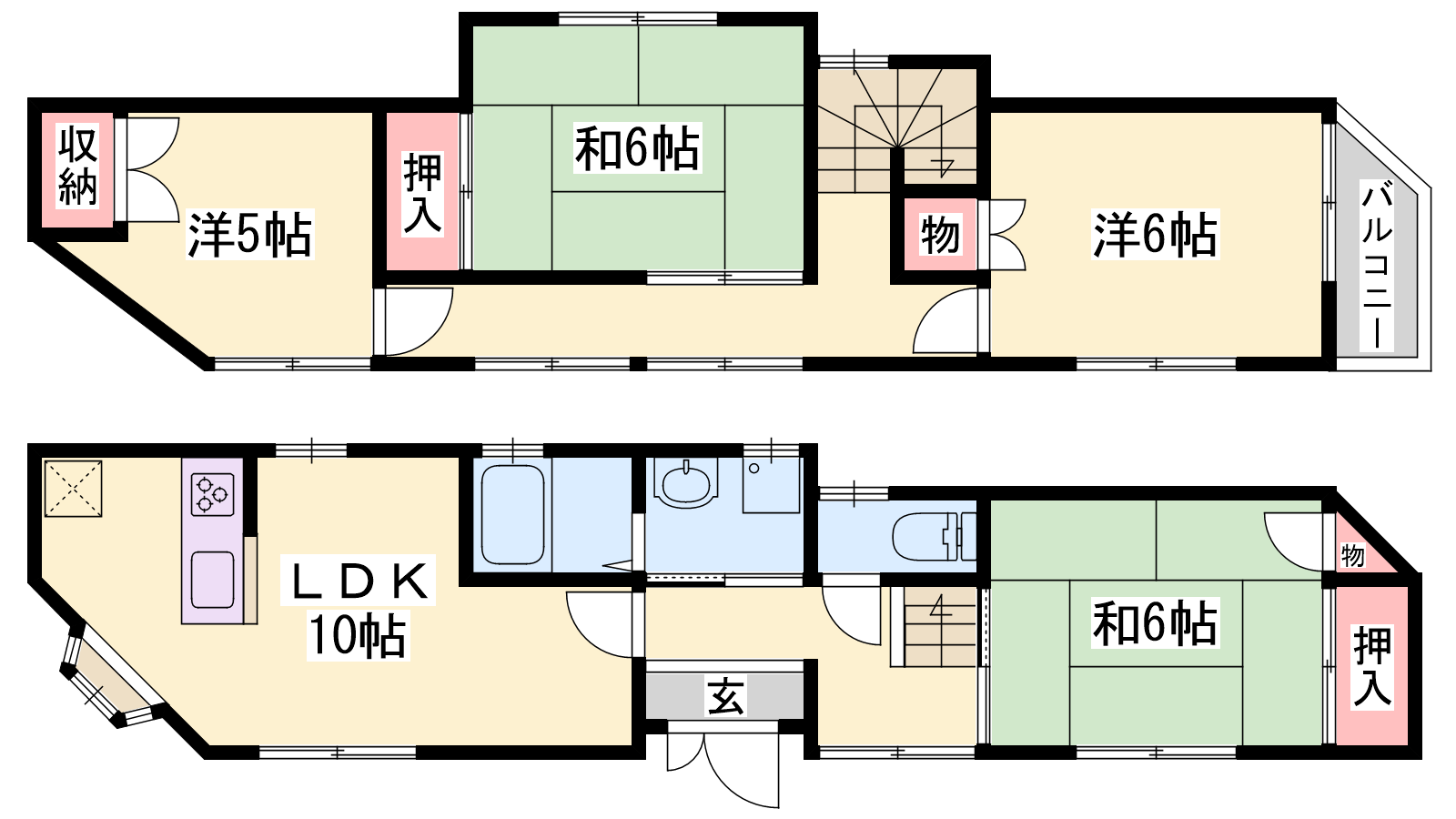 - LDK10帖、和室6帖、和室6帖、洋室6帖、洋室5帖