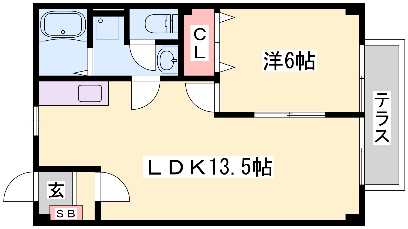 - LDK13.5帖、洋室6帖