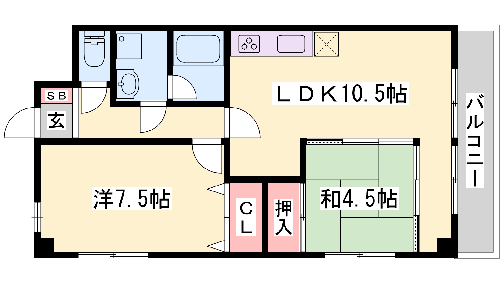 - LDK10.5帖、洋室7.5帖、和室4.5帖